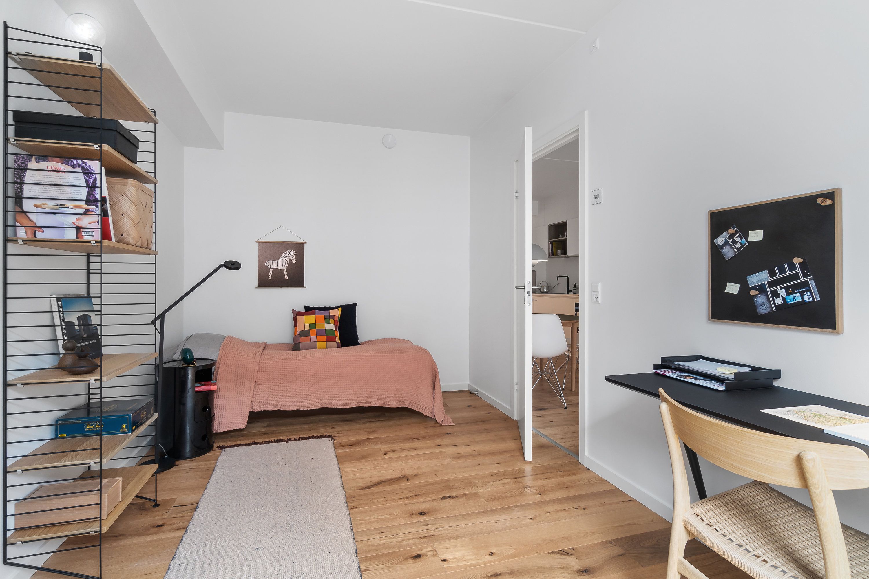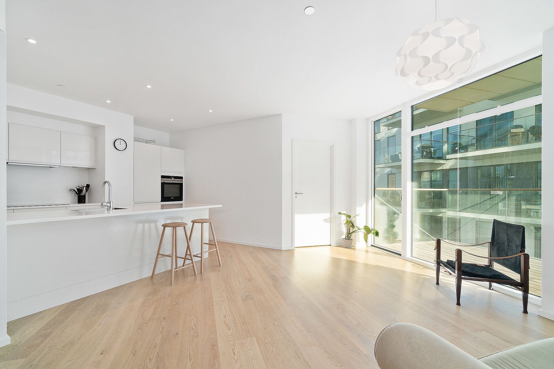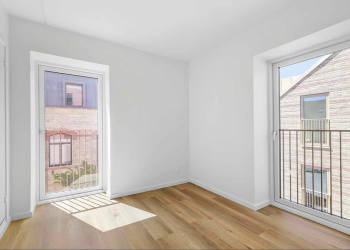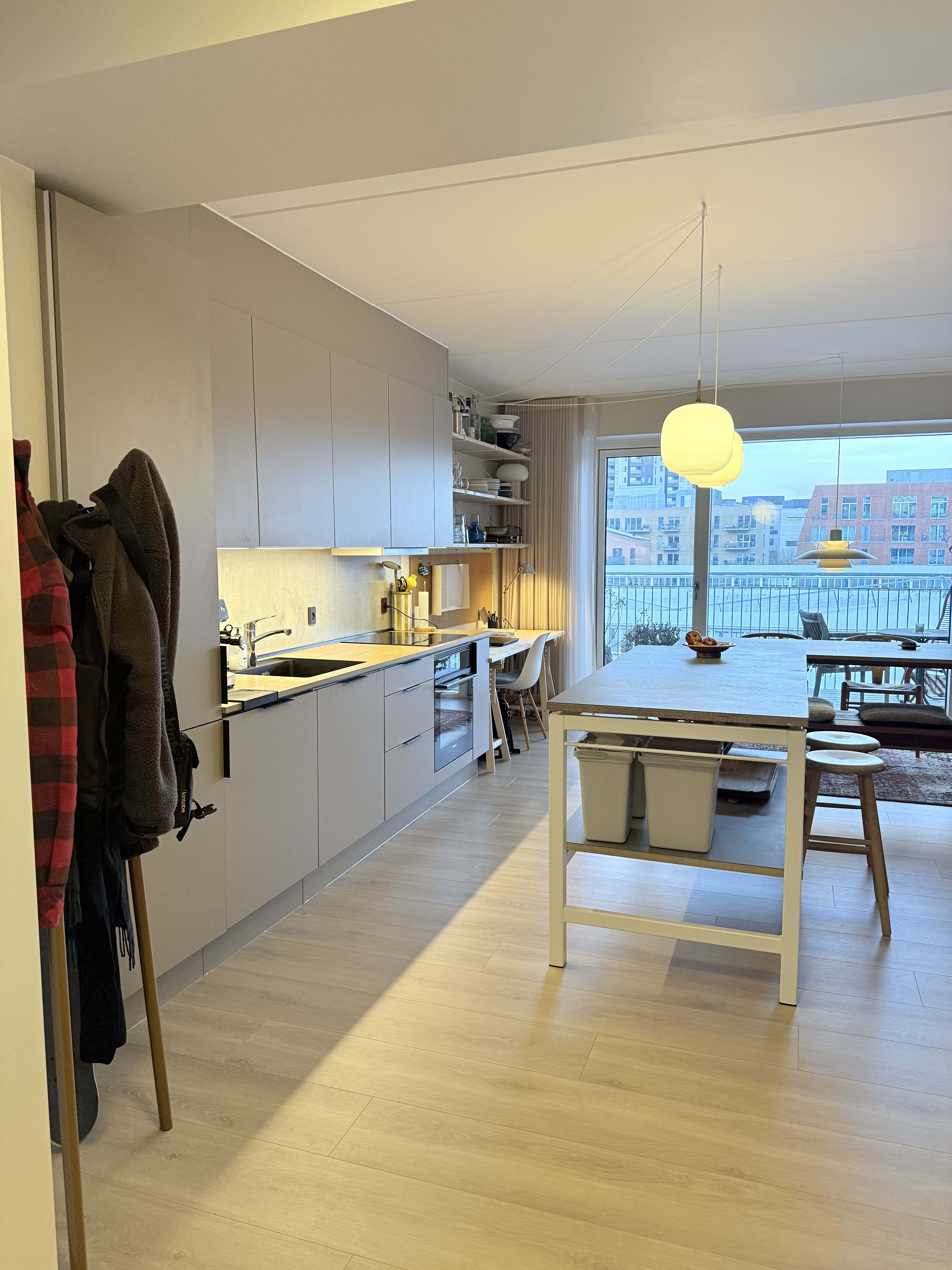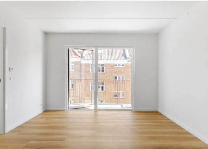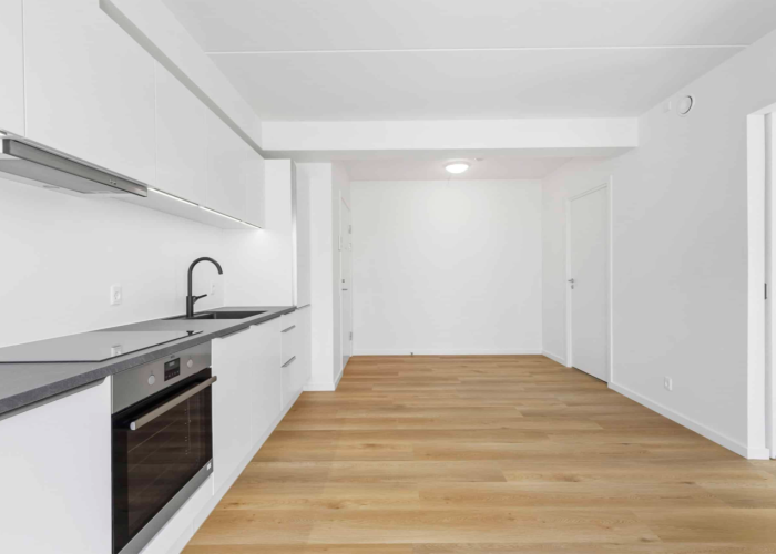 I denne 3-værelses lejlighed er der kælet for detaljerne. Køkkenet er opført i smukke detaljer, trægulvene i lyse materialer og alt i hårde hvidevarer følger med i lejligheden.