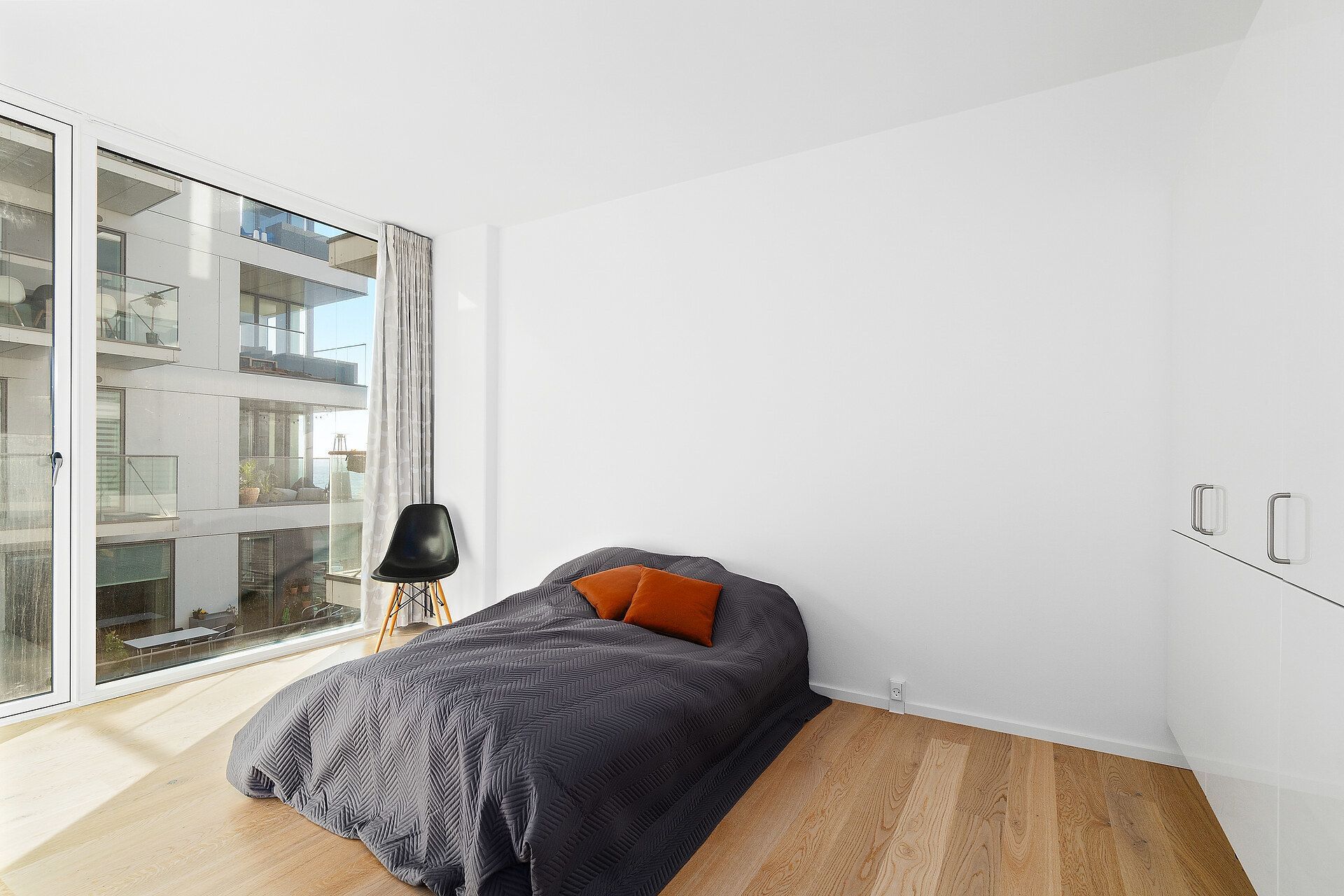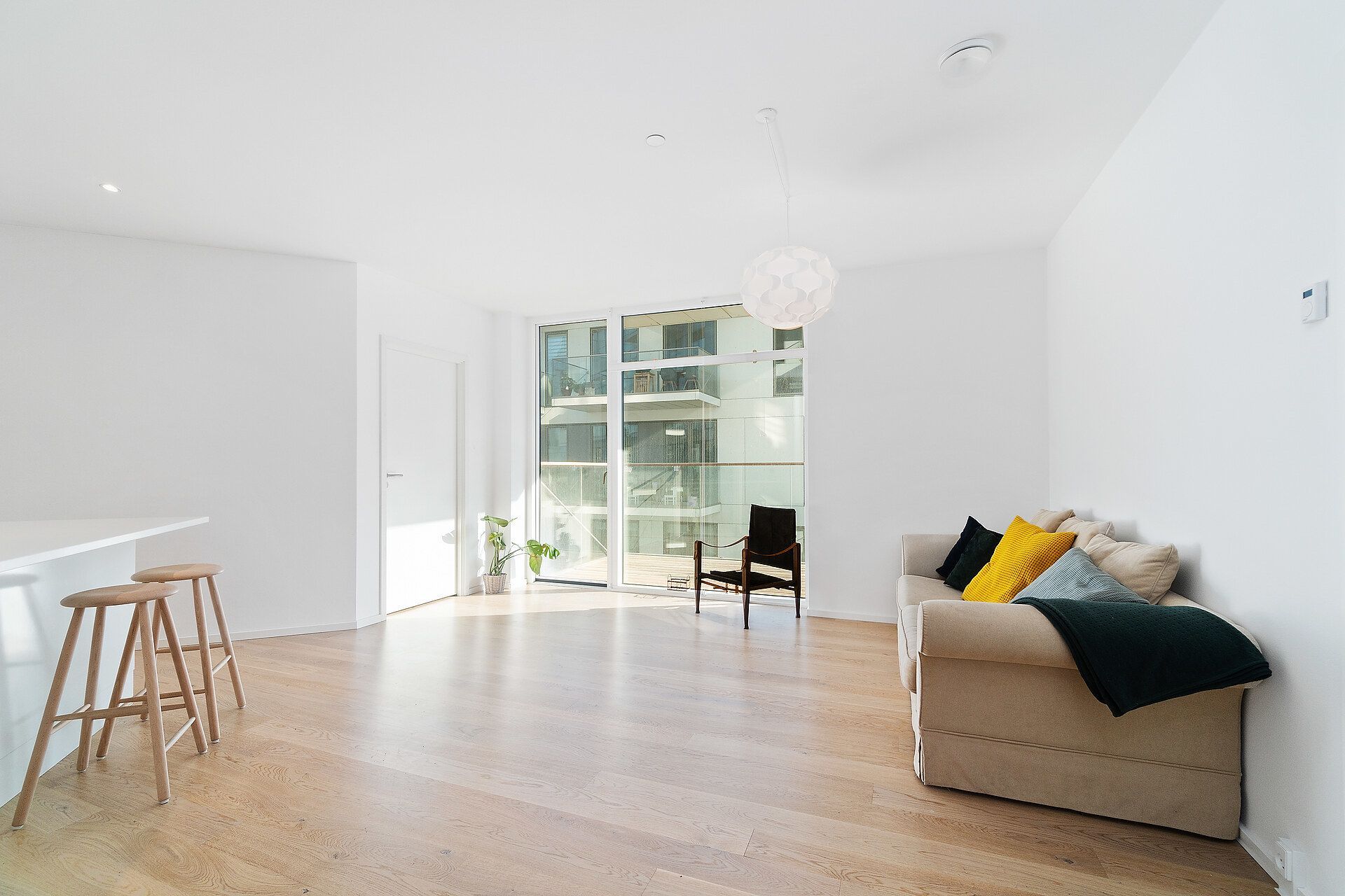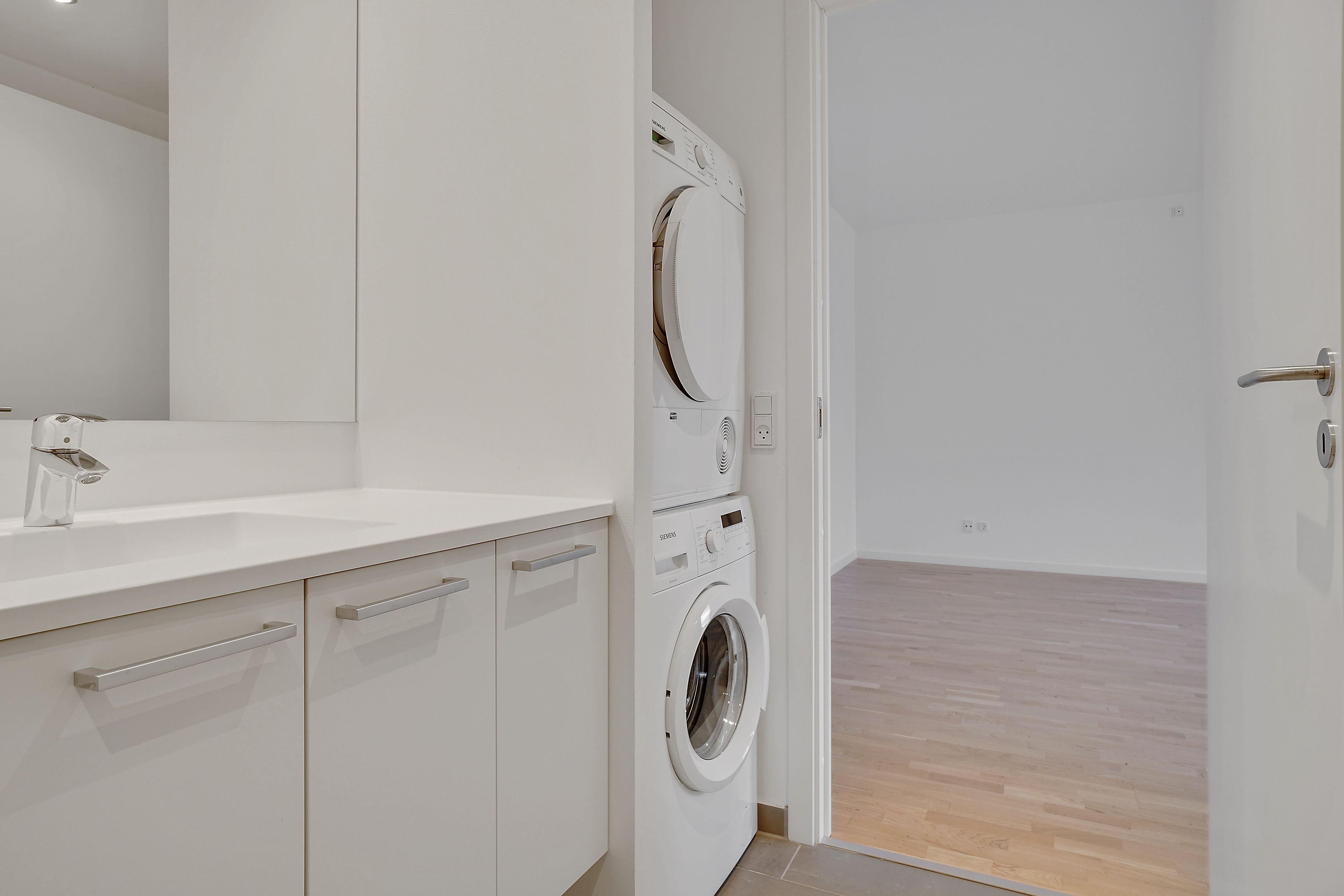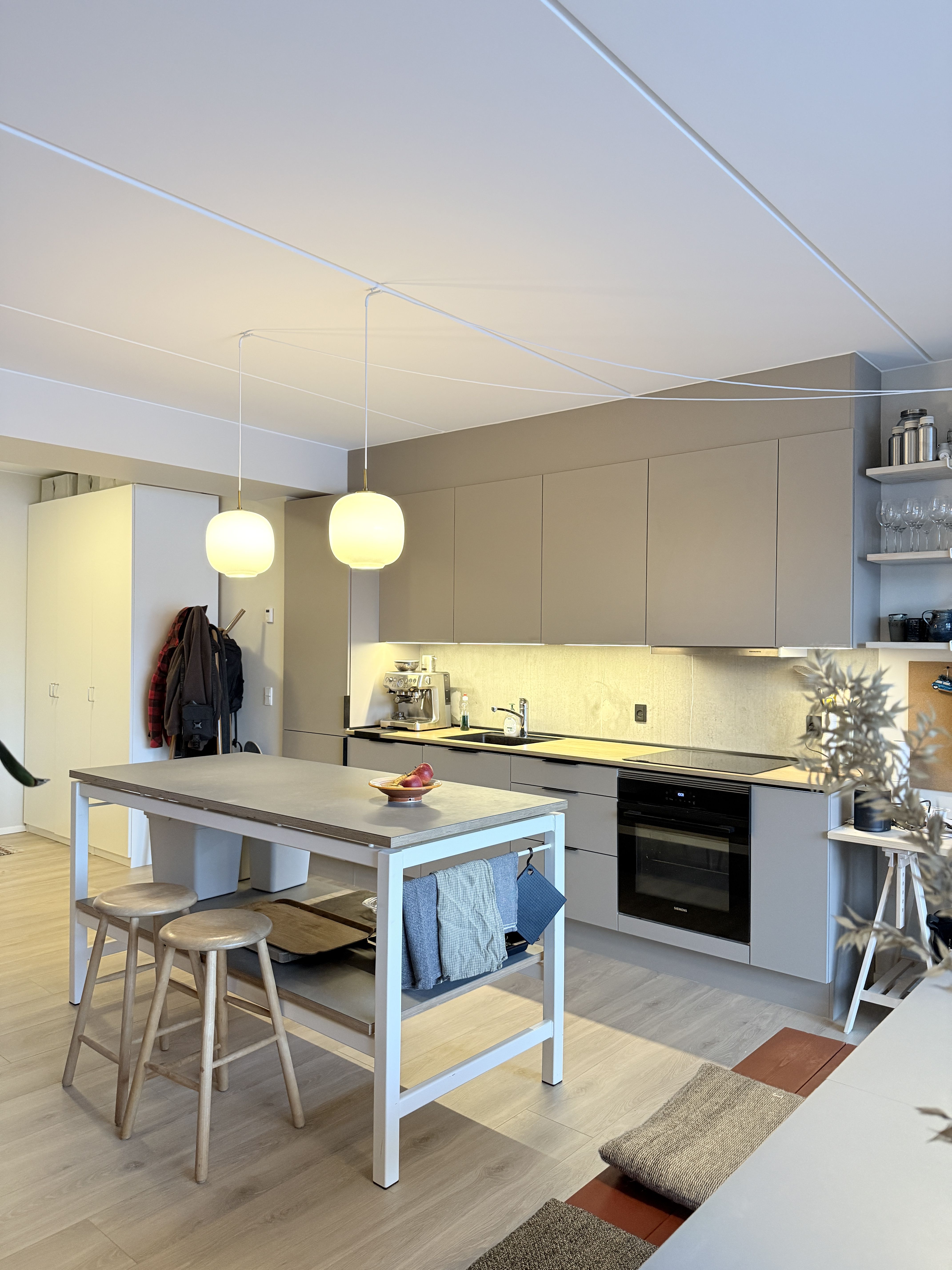 I denne 3-værelses lejlighed er der kælet for detaljerne. Køkkenet er opført i smukke detaljer, trægulvene i lyse materialer og alt i hårde hvidevarer følger med i lejligheden.