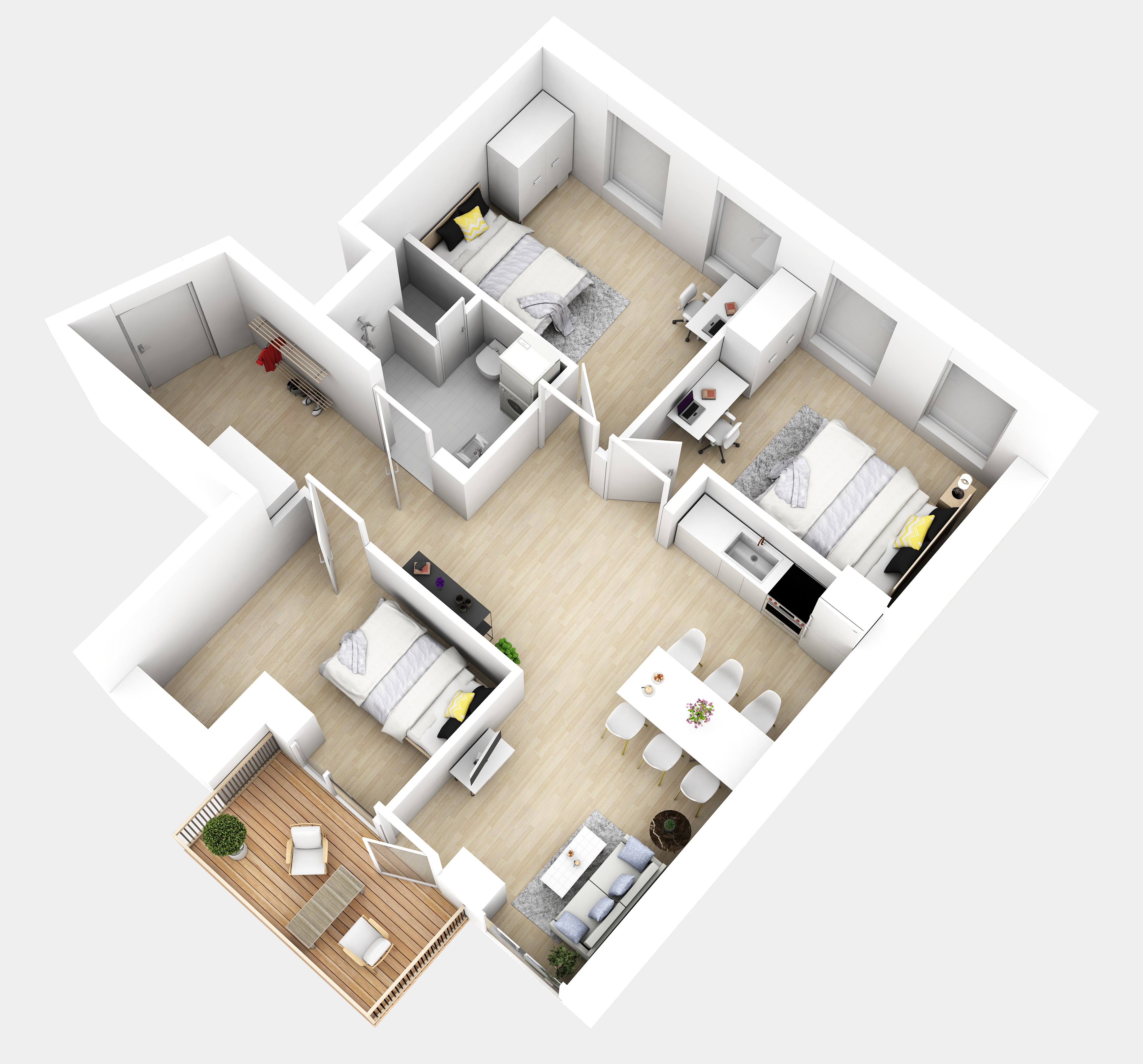 et stort plus for studerende. Alle lejligheder er lyse og har store altaner