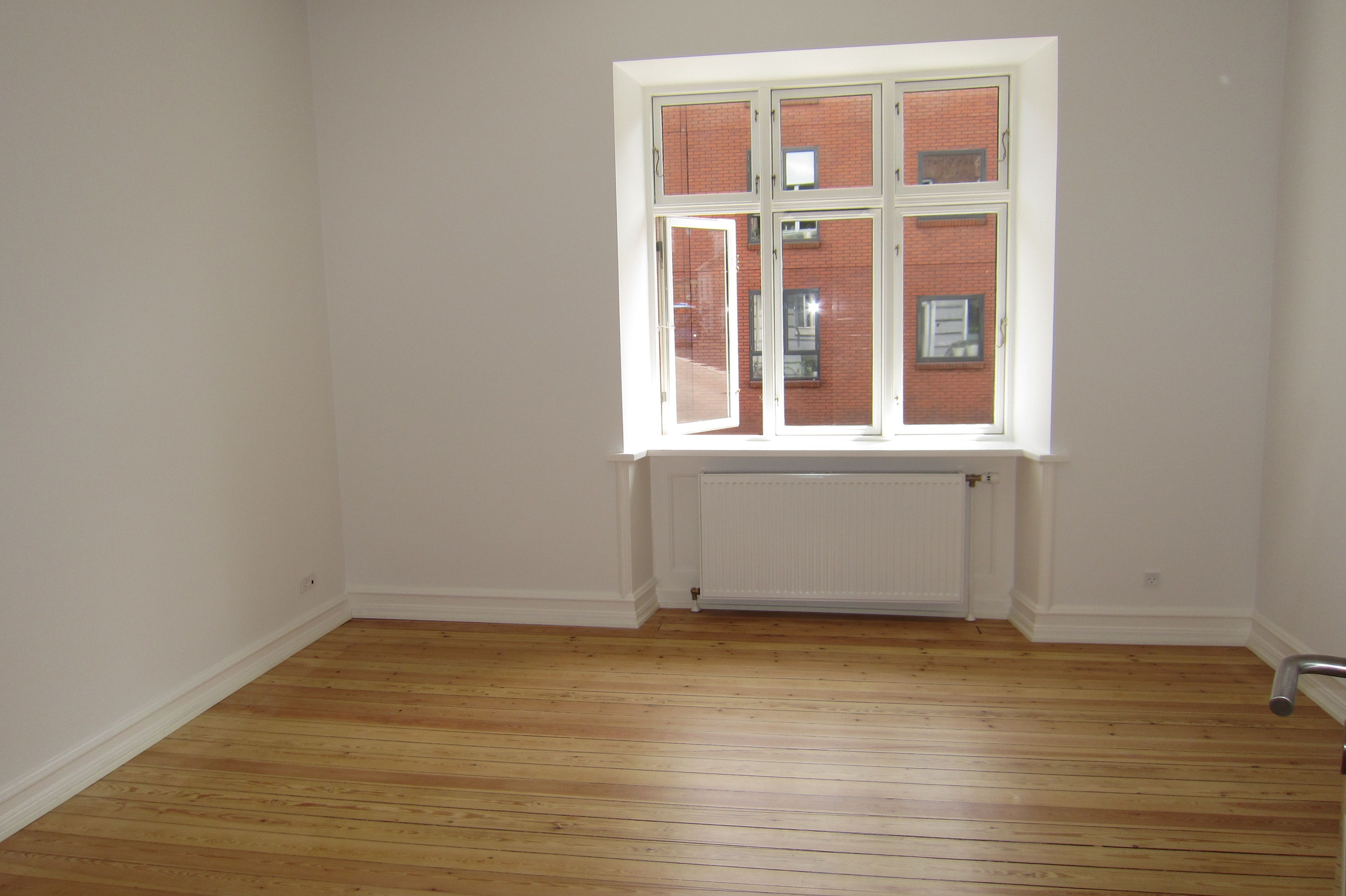 Lejligheden er med flotte trægulve og indbyggede skabe med små, lækre opbevaringsløsninger, der sparer plads og udnytter hver en kvadratmeter. Her får du to gode værelser samt et stort køkkenalrum.