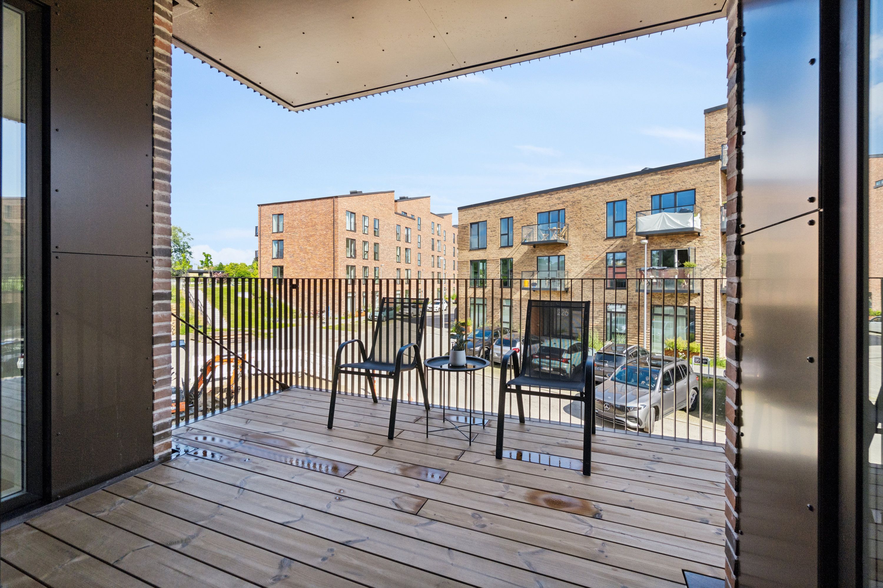 Lejligheden er delevenlig for 2 personer. I ejendommen er der elevator, mulighed for leje af parkeringsplads såfremt nogle er til udlejning. Der er cykelparkering i kælderen, samt eget depotrum medfølger. Der er ligeledes en stor fælles tagterrasse til fri afbenyttelse.