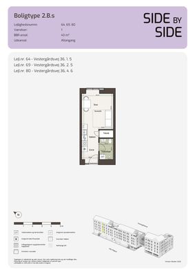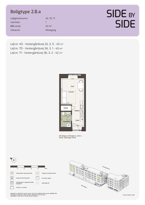 1 rm. apartment of 43 m²