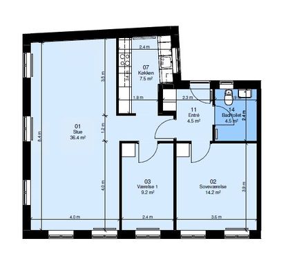 3 rm. apartment of 76 m²