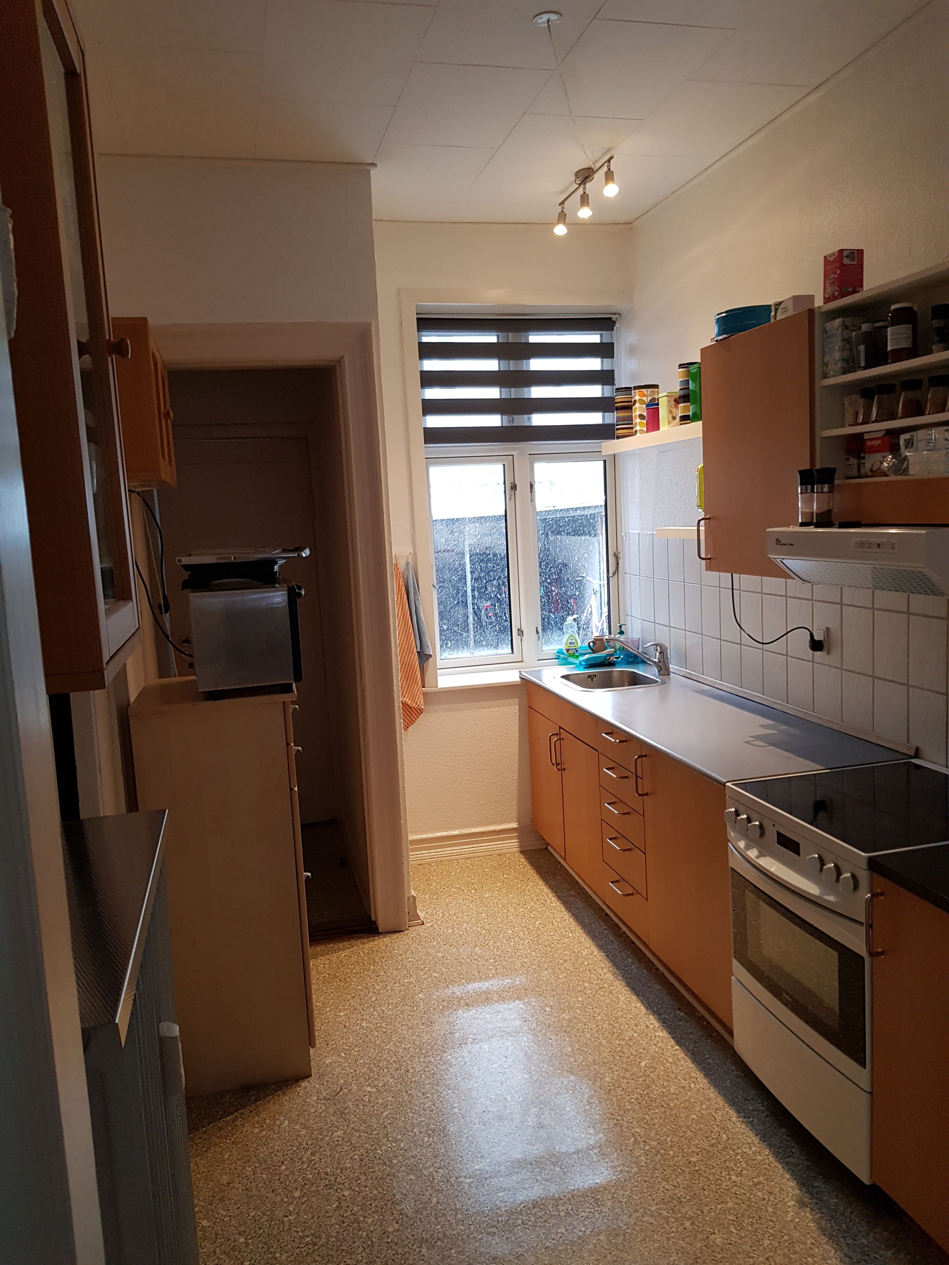 Mindre gang Nyere køkken, stort kølefrys Nyere bad med brus Dejlig stue Soveværelse med adgang til lille altan Lejligheden er ny malet Dørtelefon - vaske kælder Nem parkering ved gaden