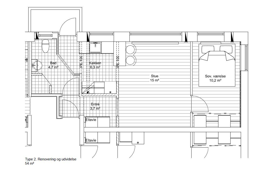 2 rm. apartment of 61 m²