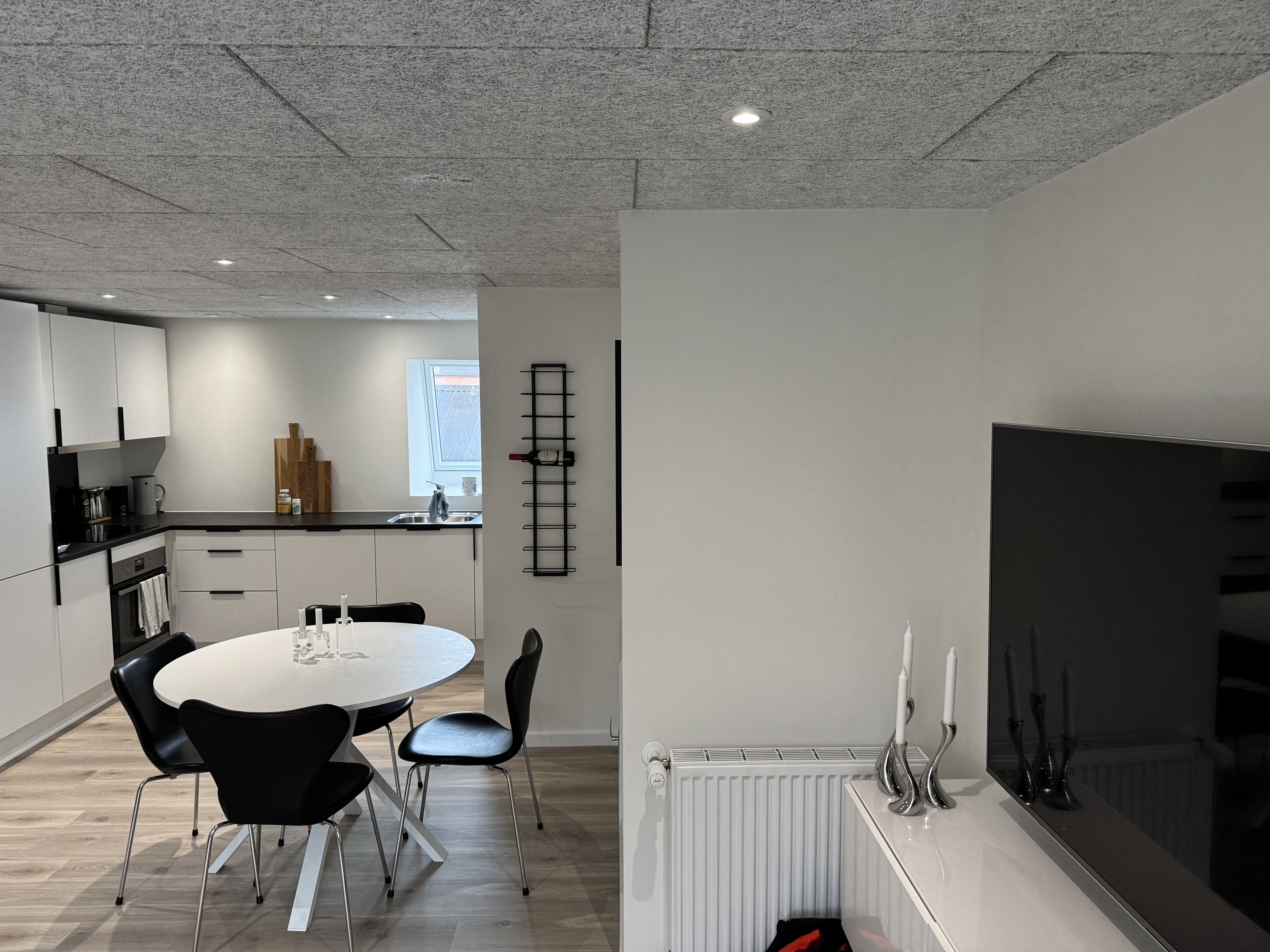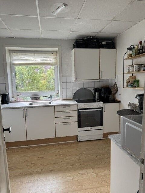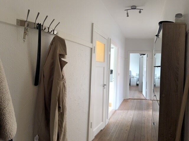 Til lejligheden hører et rum i kælderen samt brug af fælles cykel eller barnevogn rum også i kælderen, begge er låst.