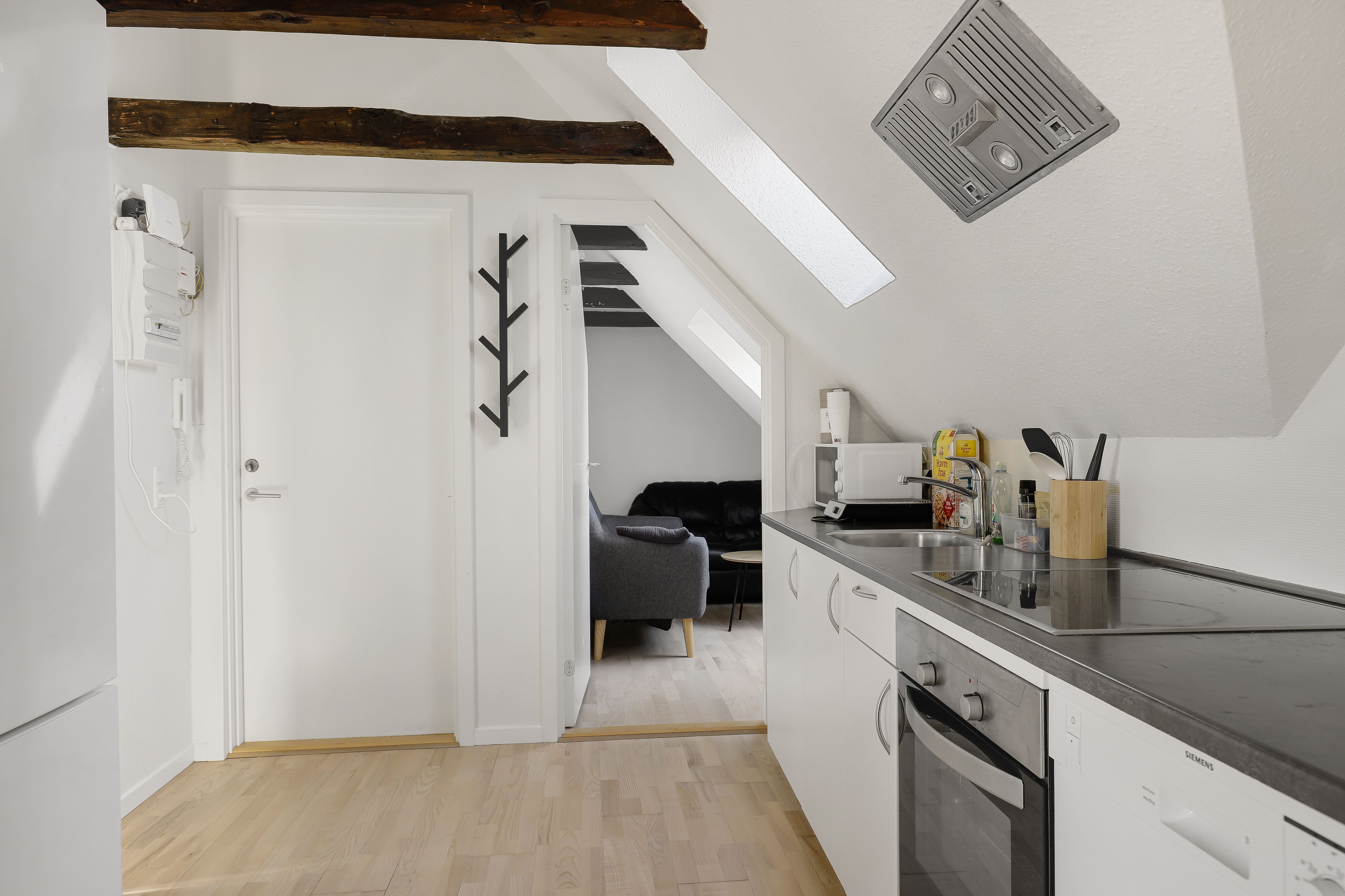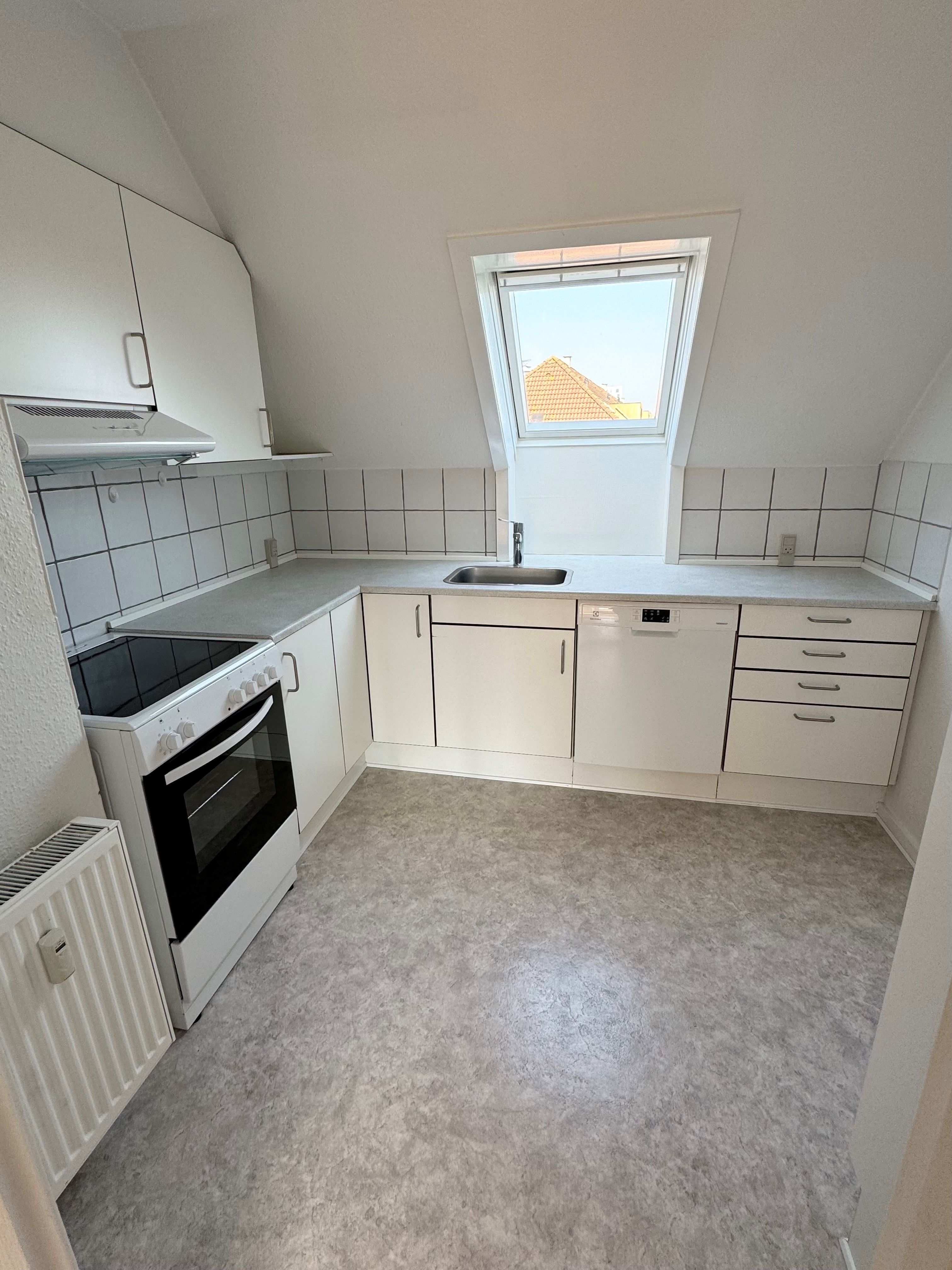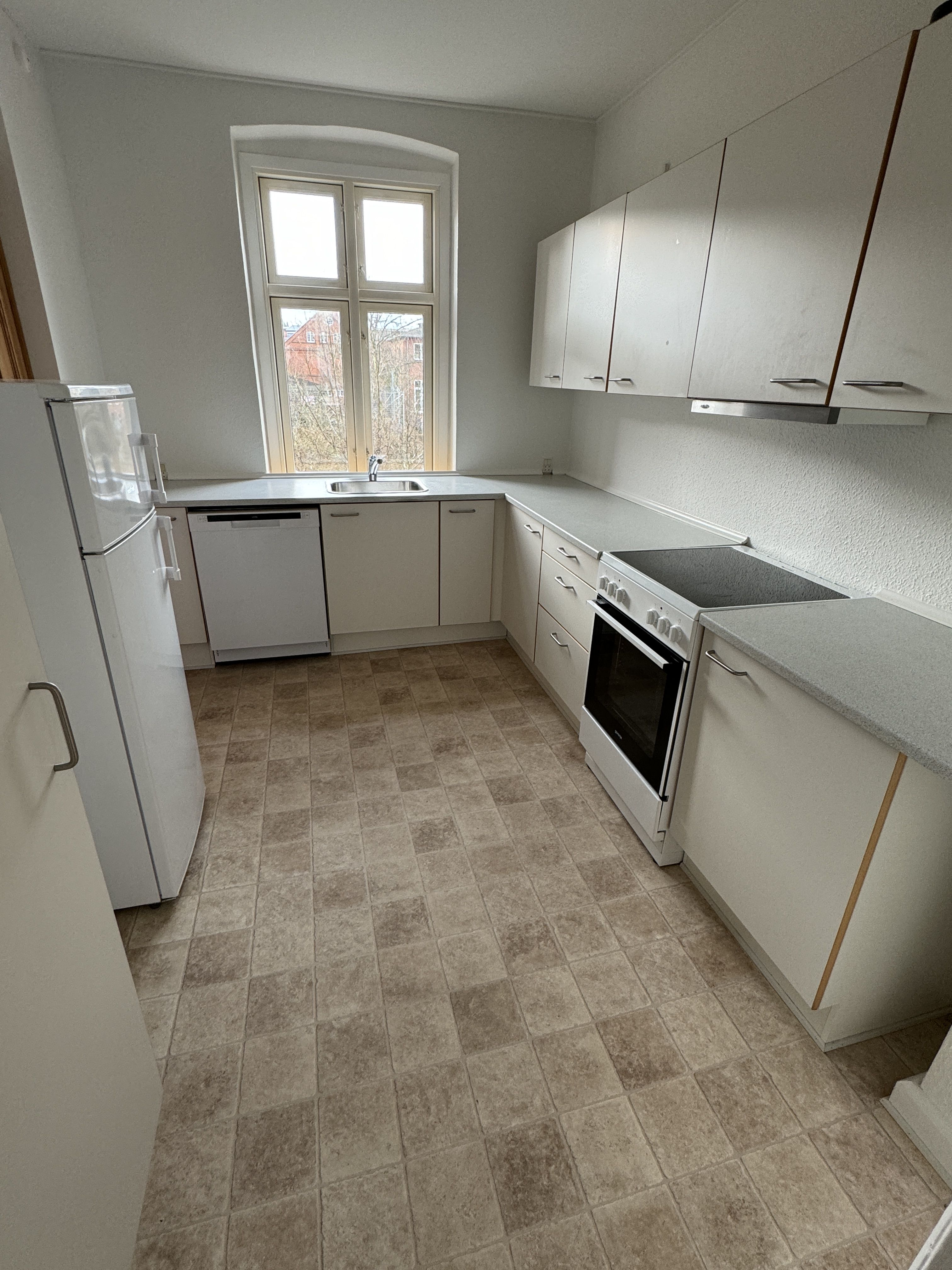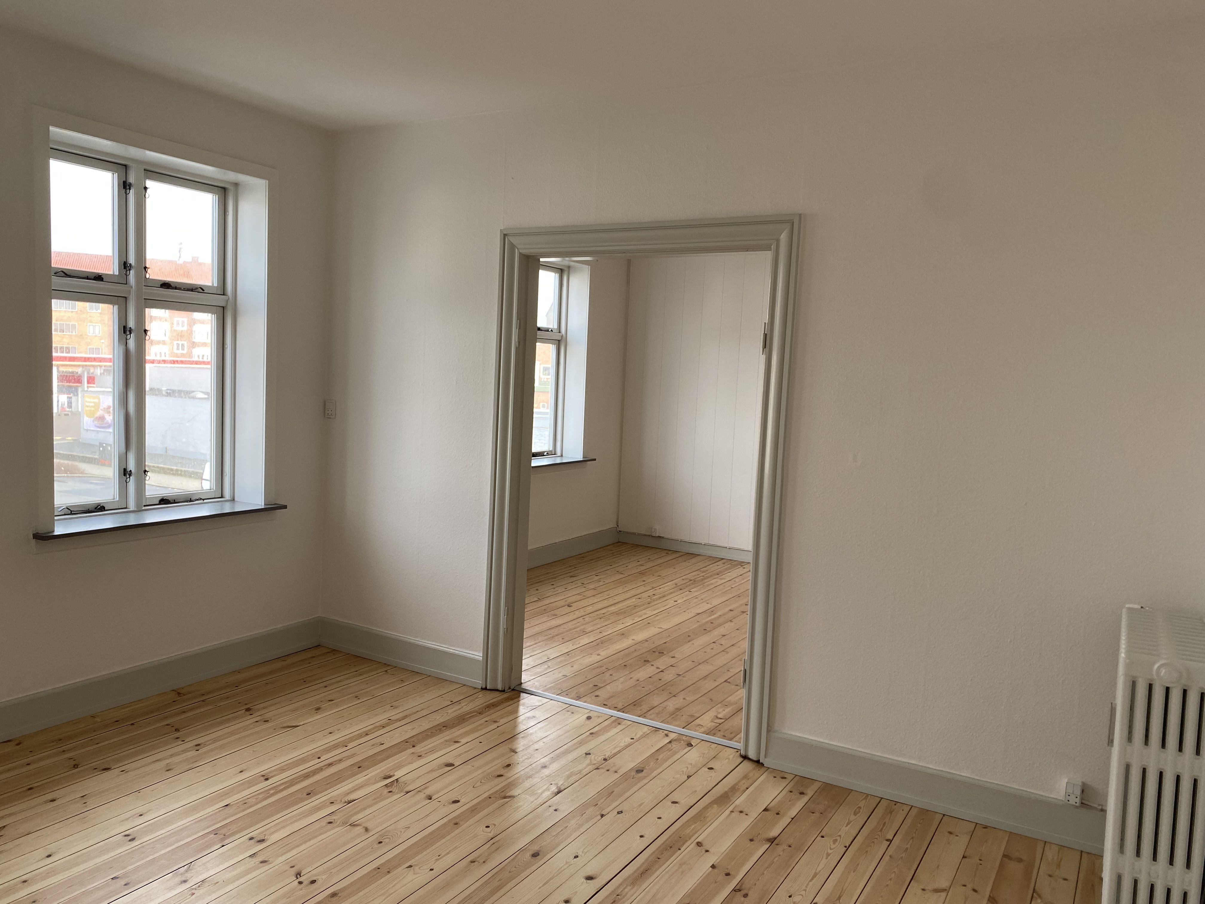 Hyggelig lyst lejlighed midt i byen, men alligevel i rollige omgivelser, udbydes nu til leje.