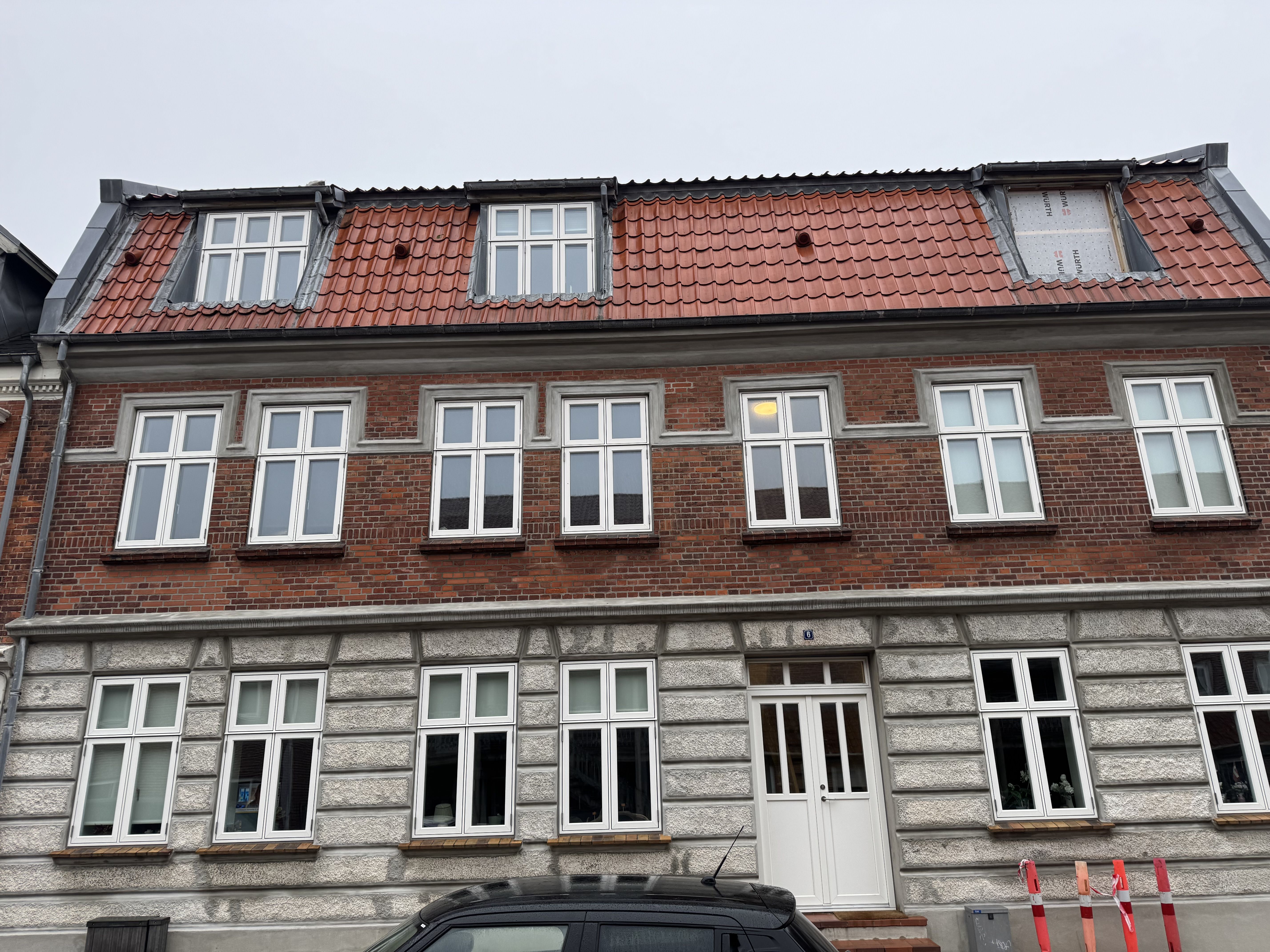 Lejligheden ligger i en smuk vedligeholdt bygning med stor fælles have med blot få hundrede meter fra Broen, Kongensgade og banegård. Gode parkerings muligheder ved ejendomen, også til gæster.