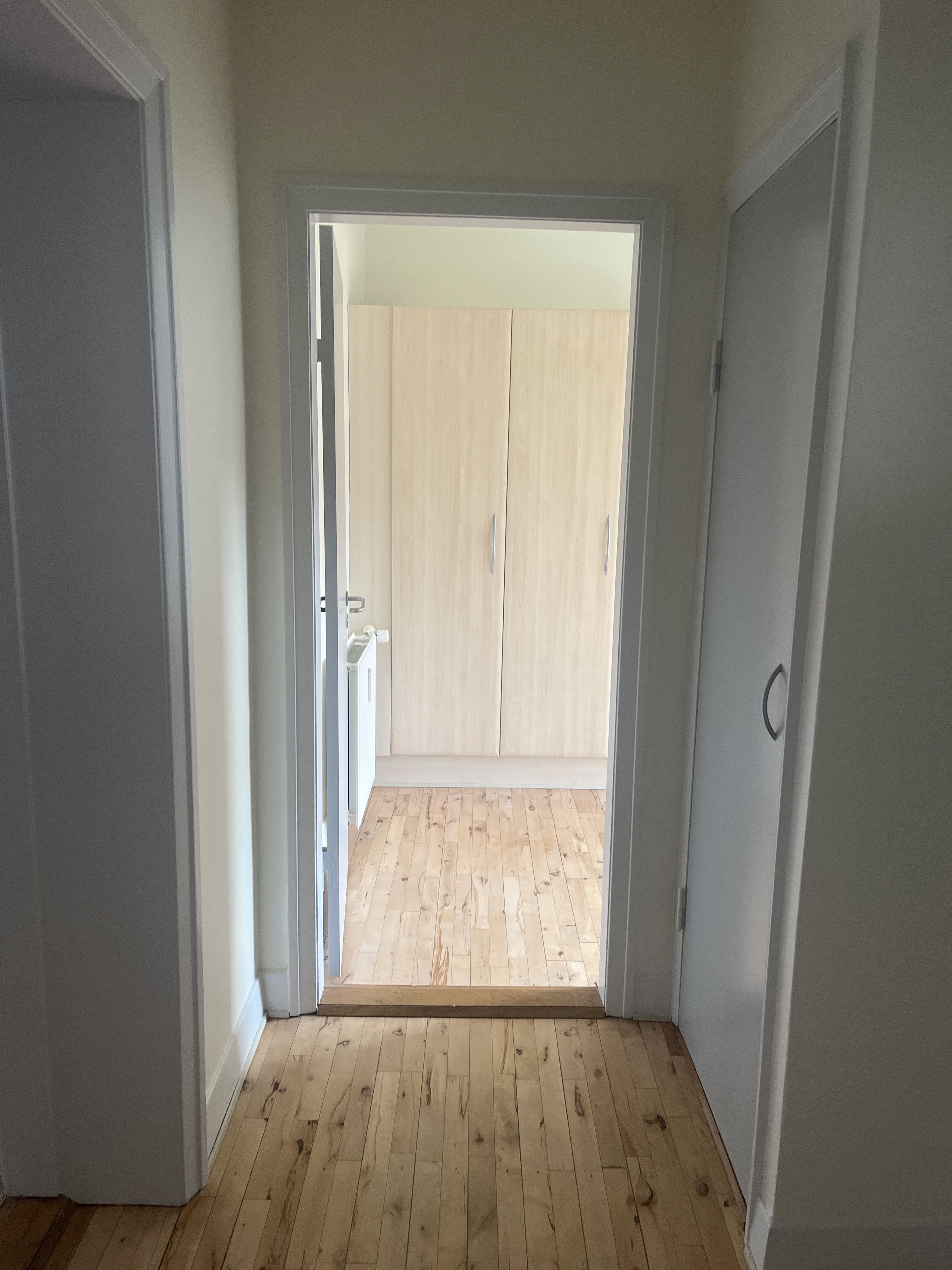 Lejligheden er total nyrenoveret, så den fremstår lys og flot med dertilhørende smukke lyse trægulve.