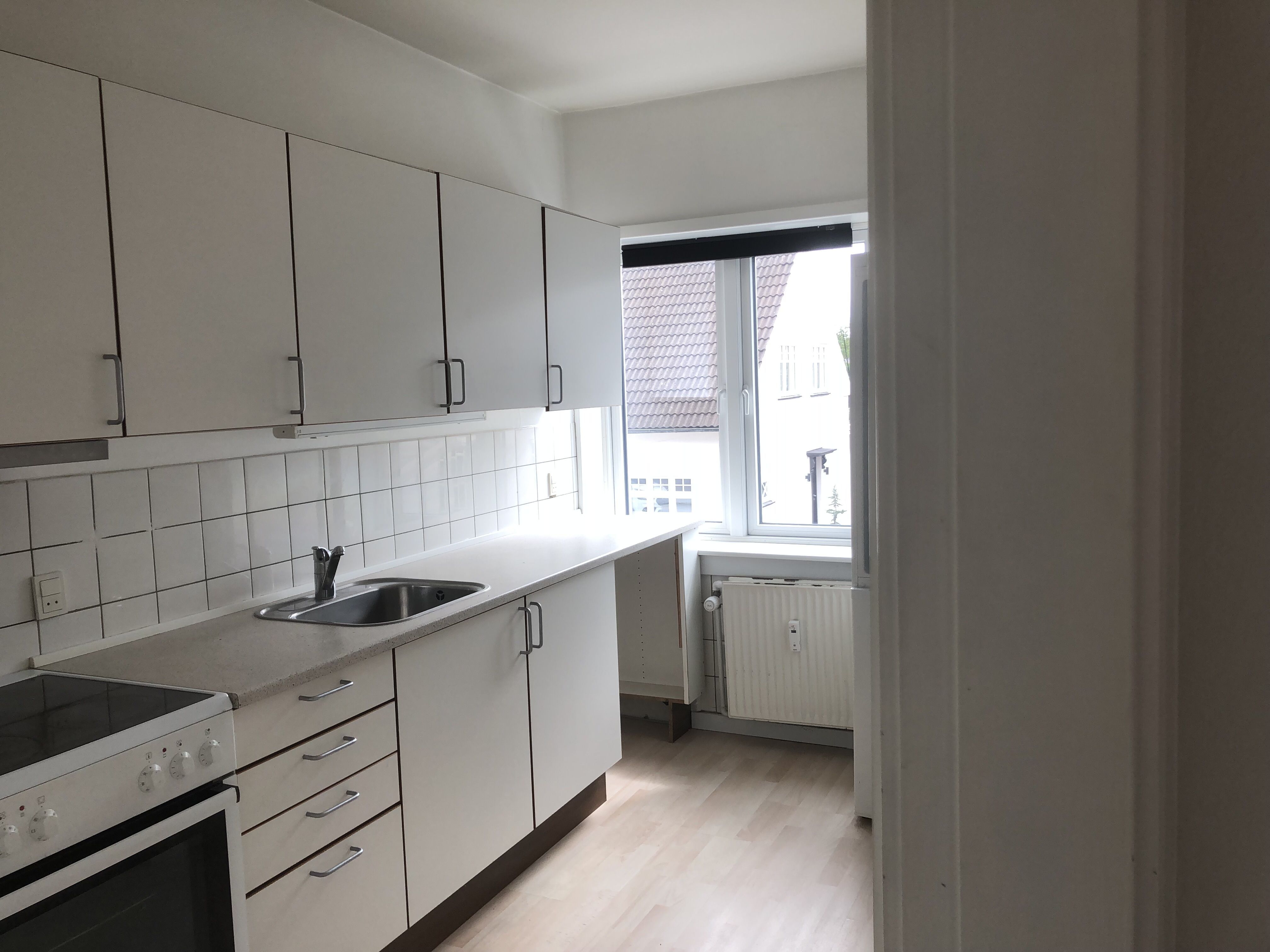 Høj stue lejlighed, køkken med opvaskemaskine, ovn, induktion kogeplade & køle/fryse skab.. Bade værelse med brus og mulighed for tilslutning af vaske maskine.. Lejligheden består af to værelser på ca. 12m2 - en stor gang og stue/køkken.. Til værelserne er der en altan, og ligeledes til stuen og denne altan er syd vendt..