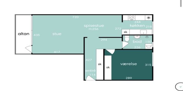 2 rm. apartment of 56 m²