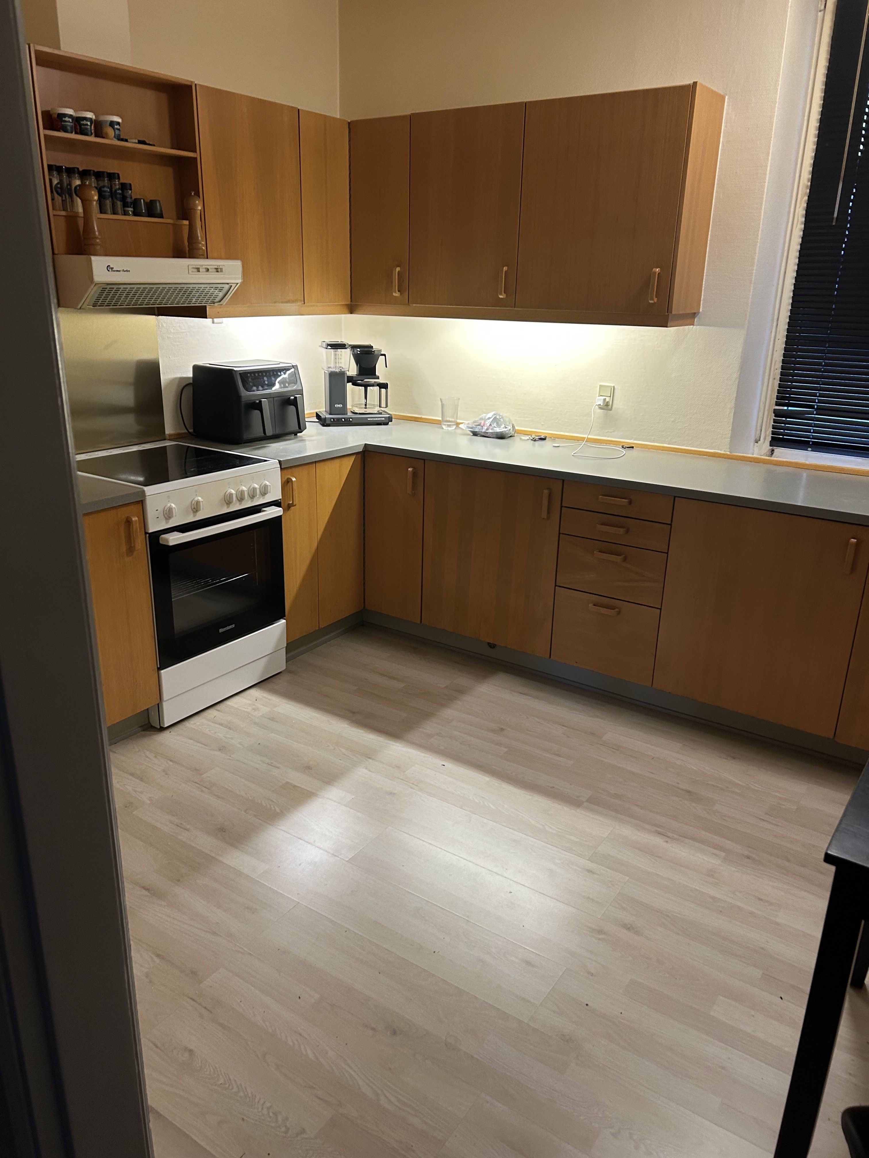 Stor herskabelig lejlighed med højt til loftet og trægulve. Køkken med opvasker, køle/fryseskab, komfur og emhætte, stor lys stue med vinduer mod syd, 3 x gode værelser med trægulve og dejligt stort badeværelse med vindue og bruseniche, vaske arrangement samt vaskemaskine og tørretumbler. Soveværelse med udgang til egen mindre terrasse. Adgang til stor fælles have.