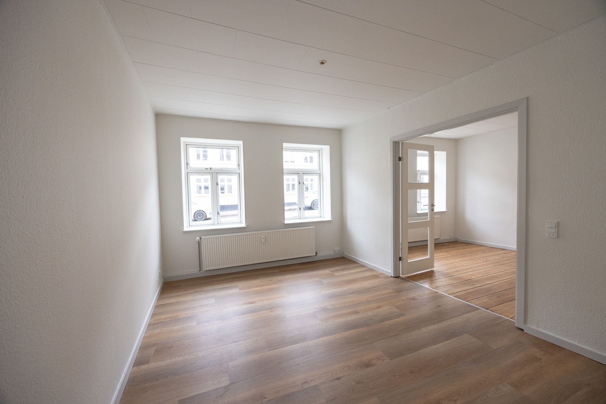 Fremstår nymalet og med slebne trægulve