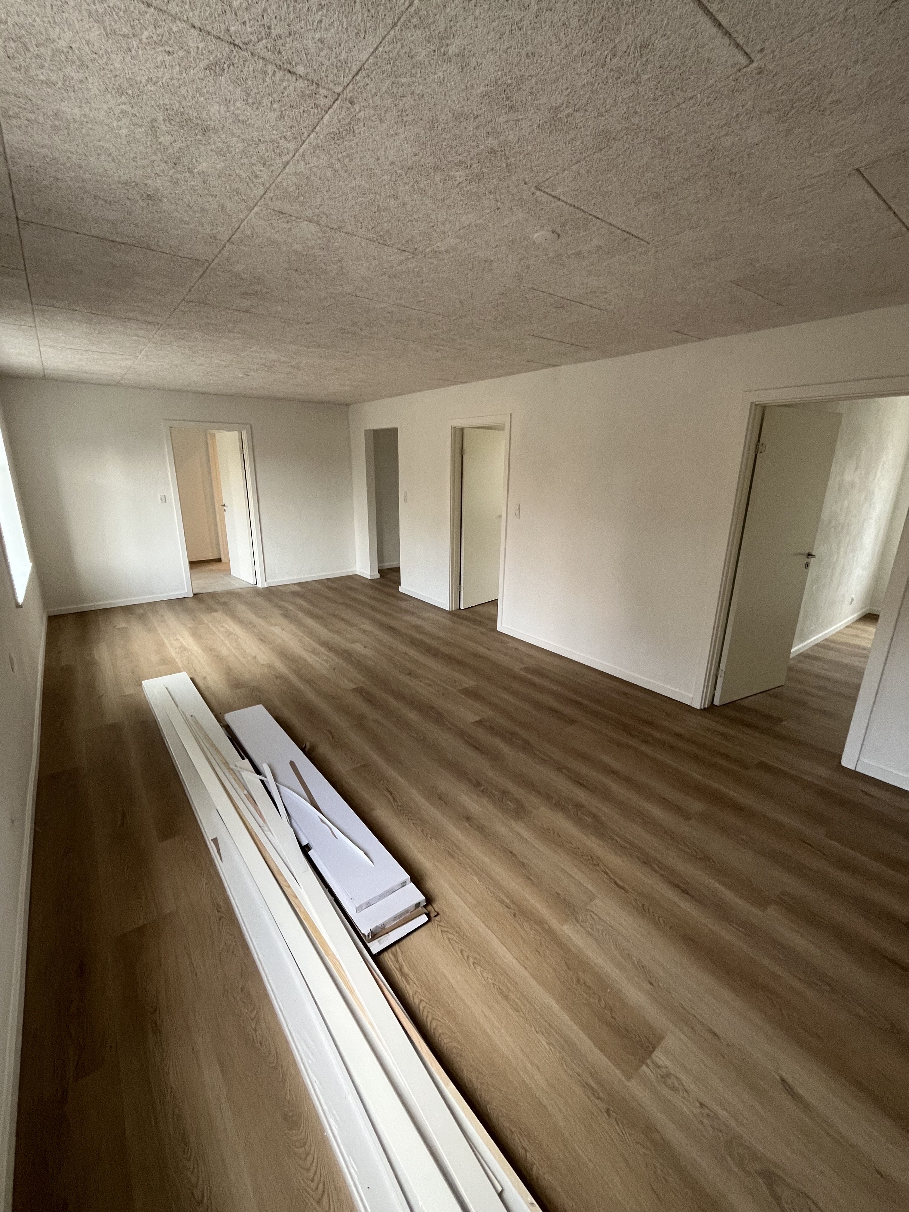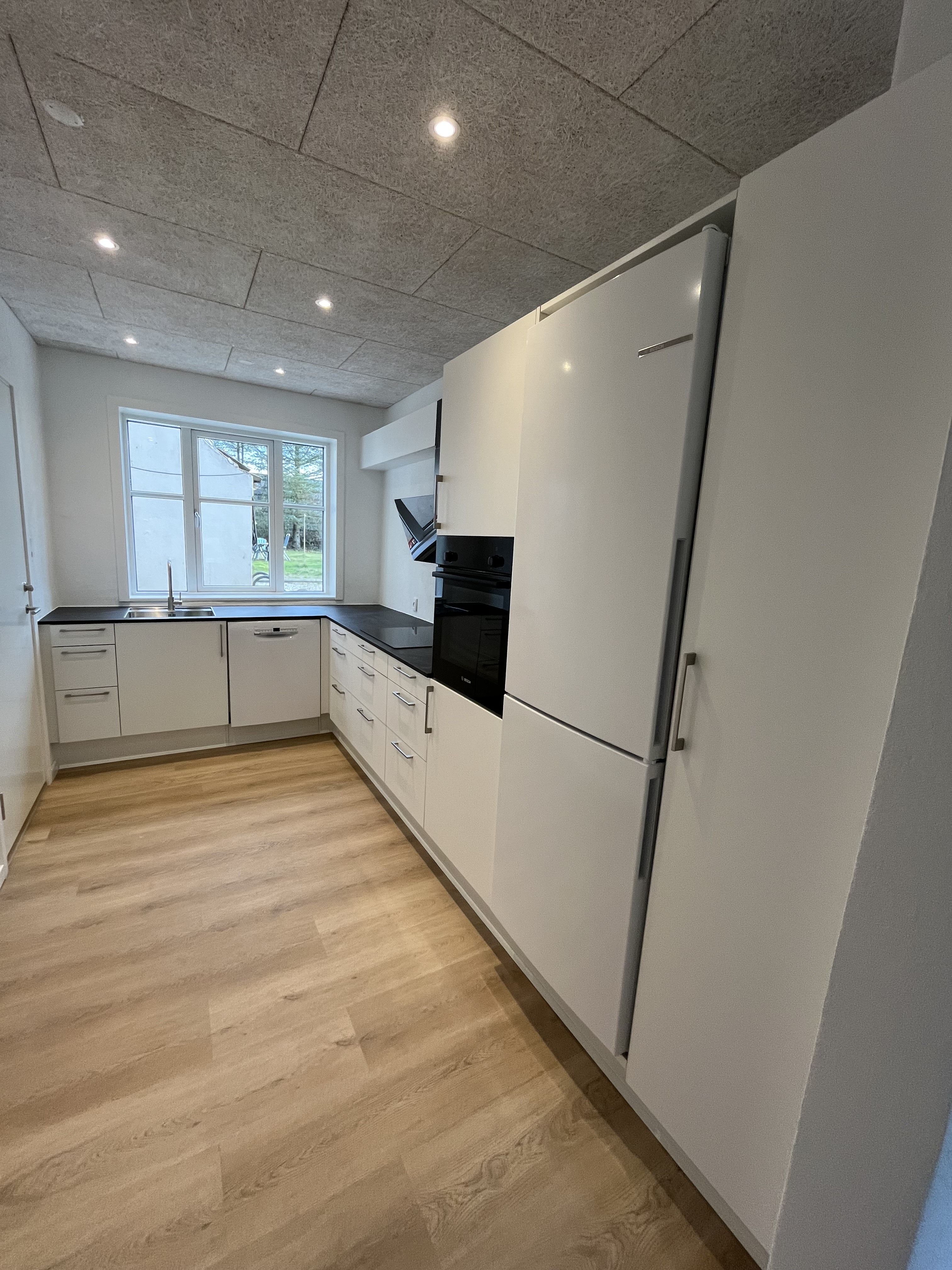 Lejligheden byder på et rummeligt opholdsrum med åbent køkken, hvor der er plads til både madlavning og hyggelige stunder. Fra stuen er der direkte udgang til en stor, solrig terrasse – et sandt frirum, hvor du kan nyde morgenkaffen eller aftensmaden med en smuk udsigt over søen og det omkringliggende grønne landskab.