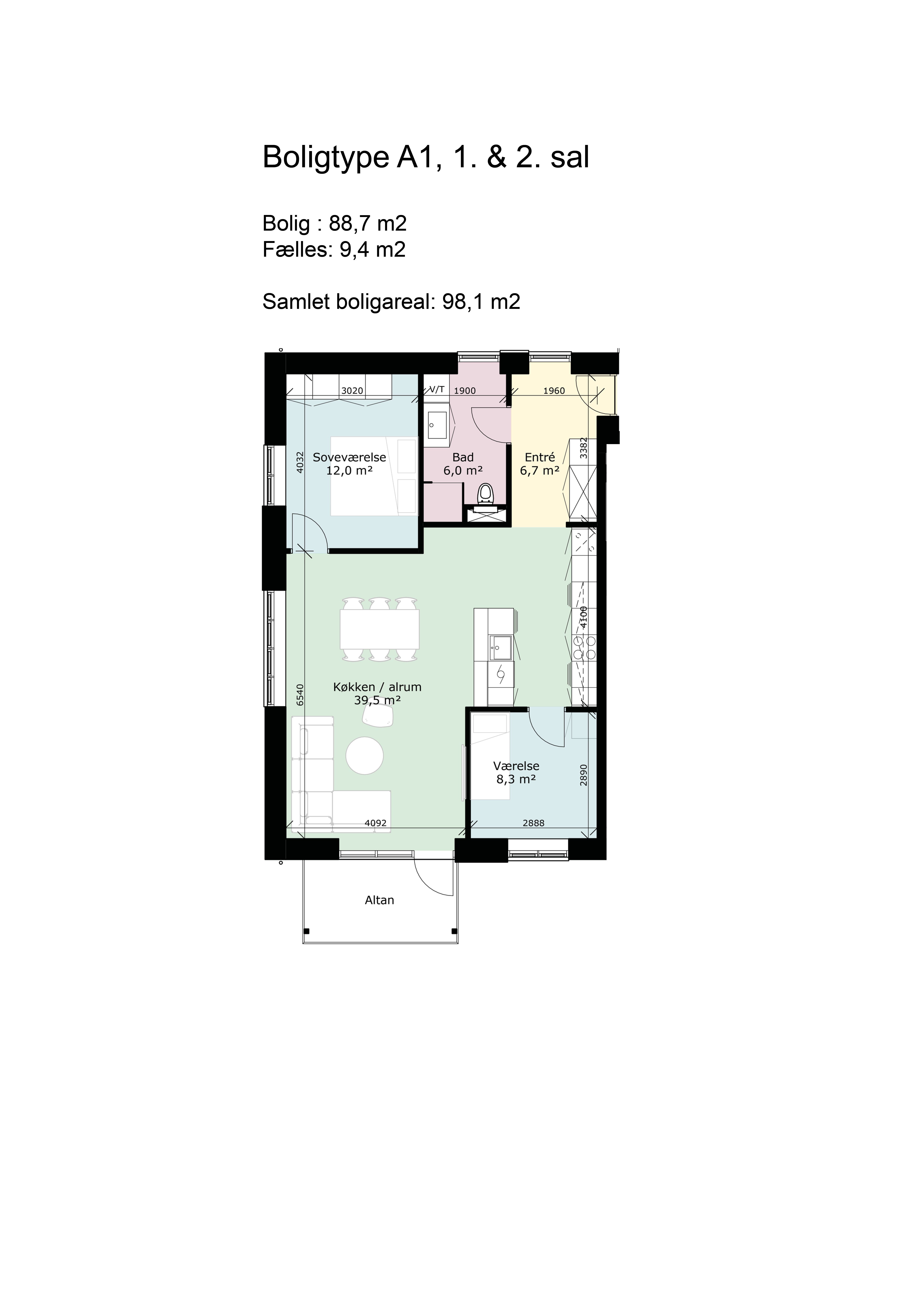 3 rm. townhouse of 89 m²