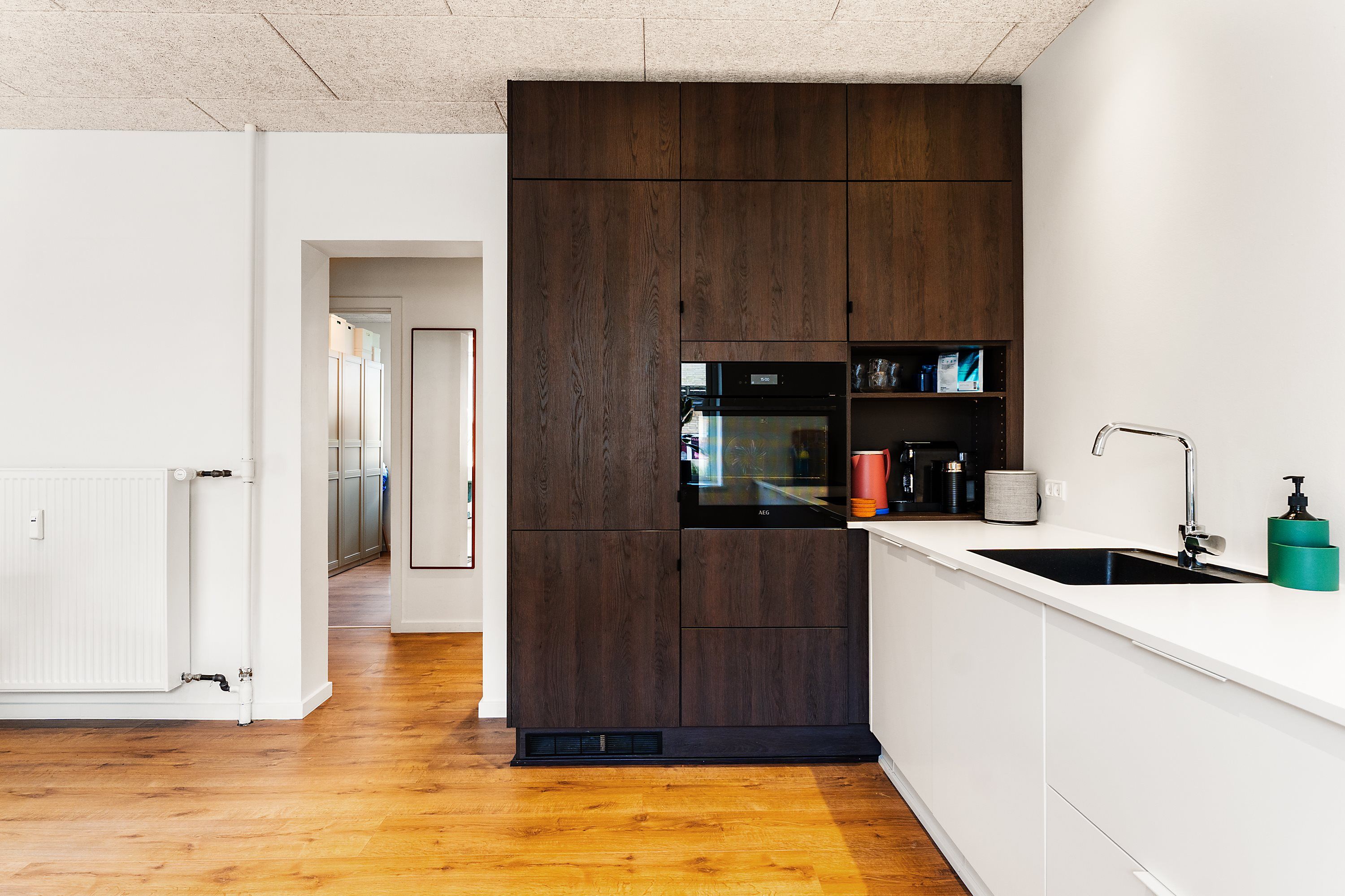 Der er et mindre kælderrum med vaskemaskine og tørretumbler, som tilhører lejemålet.
