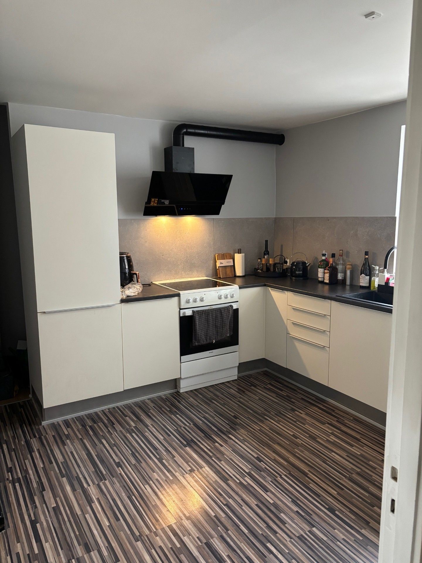 Lejligheden er lige nu blevet renoveret med nye flotte gulve overalt, nyt køkken og nyt badeværelse.