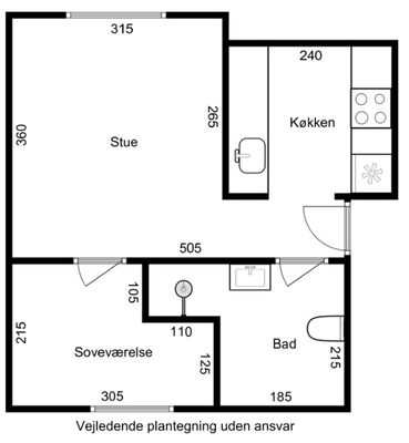 2 rm. apartment of 43 m²