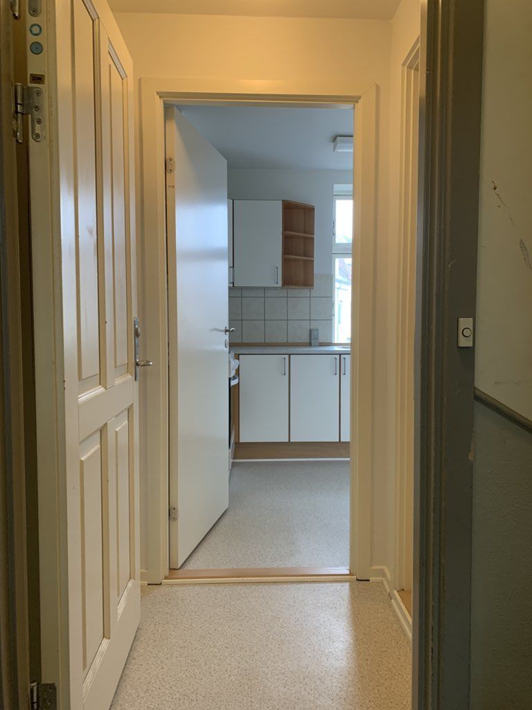 2 værelset stue lejlighed, fordelt med stue, køkken, værelse og bad. Stueplan er en ½ etage oppe - se billede. Uden indkig fra gaden. Afhøvlede trægulve i stue og værelse, samt indgang. Køkken har køle-fryseskab og komfur, lille spiseplads. Fælles gårdhave med en anden lejer, hvor der er lagt nye fliser forår 2021. I kælder er møntvaskemaskine. Depotrum i kælder og plads til cykel i kælderen. Lejer må ikke være opført som dårlig betaler. Ingen husdyr. Aconto dækker vand 300, varme 500. Kontakt ml. kl 8-16 på hverdage og fremvisninger sker i samme tidsrum. Kontakt udlejer René for fremvisning, som også er på hverdage kl. 8.00-16.00 Når du bor i vores lejlighed: Vi vægter ansvarlig, ærlighed og ordentlighed. Vi vægter høj service, inden 24 timer efter din henvendelse har vi taget hånd om din sag. Egen vicevært - den samme gennem mange år. Vi er ikke længere væk end et opkald på telefonen. Vi er et privat udlejningsfirma med 100 lejemål fordelt i Vejle, Horsens, Hedensted, Lindved, Kolding og Tørring