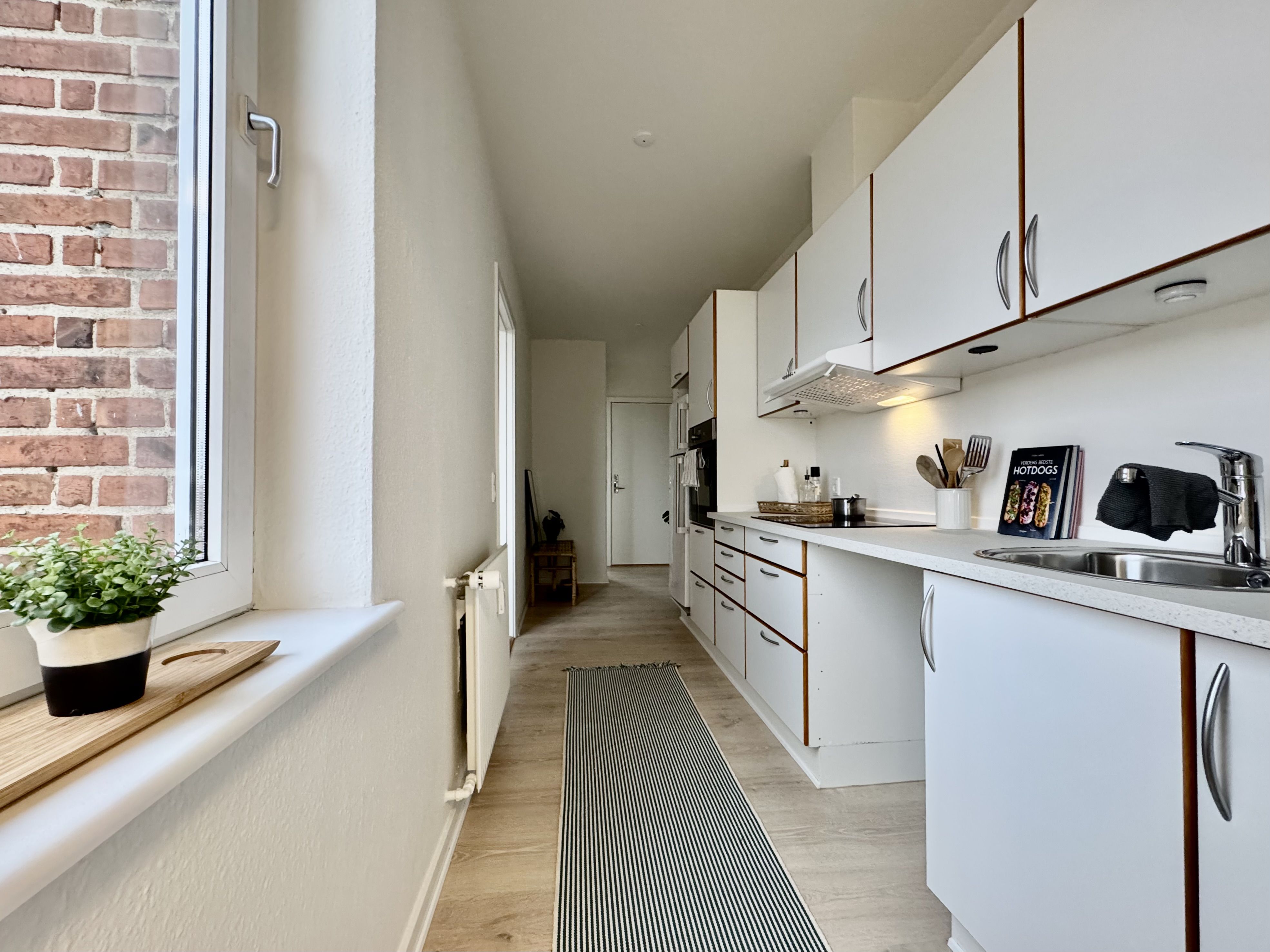 Ældre modernisering med køkken/bad, men nye vinduer med 3-lags lavenergiruder mm. - stor østvendt altan, dørtelefon og hyggeligt gård- og haveanlæg. Plads til 45 cm opvaskemaskine. Attraktivt beliggende i gammel kvarter med sjæl, tæt på havnen, 10 min. gang til gågaden og centrum. Tilhørende depotrum. Lejligheden er beliggende i smuk ejendom, der løbende er moderniseret. Vask/tørretumbler og kold vand er inkluderet i huslejen. Husdyr tilladt under særlige vilkår, forhør nærmere på kontoret