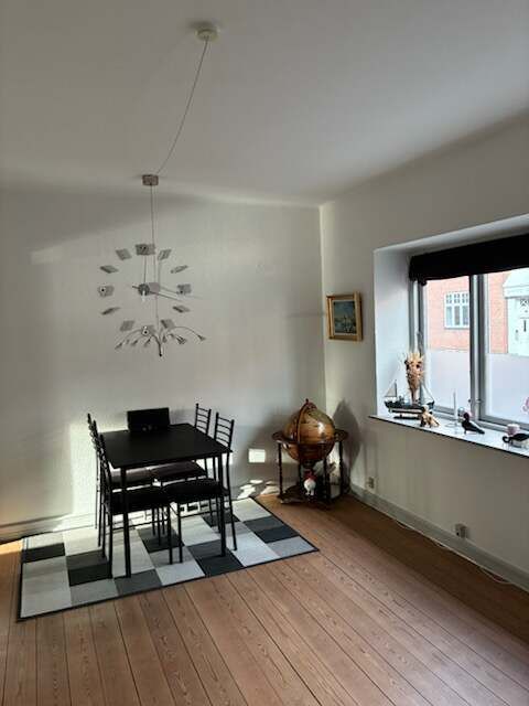 Lys 2-værelses på 59 m2 med fransk altan og charmerende plankegulve Velkommen til en velholdt 2-værelses lejlighed på 59 m2 med en funktionel planløsning og et behageligt lysindfald. Her får du to regulære rum, et separat køkken med vindue og et enkelt badeværelse – en nem og overskuelig base til hverdagen. Entréen samler boligen og leder videre til et lyst opholdsrum med flotte plankegulve. Rummet er let at indrette med både sofa- og spiseafsnit. Soveværelset ligger separat og byder på samme lyse udtryk. Køkkenet er tidløst i hvidt med god skabs- og bordplads, flisebeklædt bagvæg og vindue ved arbejdsområdet. Her er komfur med ovn, emhætte samt køle-/fryseskab – de vigtigste funktioner er på plads til en praktisk hverdag. Badeværelset er enkelt og funktionelt med bruser, håndvask, spejl og gulvafløb. Materialerne er holdt i lyse, neutrale toner med gennemgående trægulve i opholdsrum og soveværelse og et slidstærkt gulv i køkkenet. Lejligheden fremstår nydelig og lige til at tage i brug – oplagt til både single og par. Lyder det som noget for dig? Kontakt os for en fremvisning.