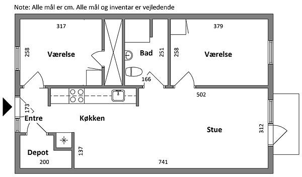 3-værelses lejlighed tæt på Centrum
