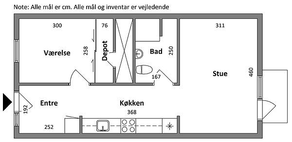 2 rm. apartment of 60 m²