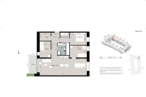 **_OBS: Køkkenerne er anderledes end visualiseret. Det er HTH-køkkener._** **_På 1- og 2-værelses lejligheder: "Stockholm 28" låge (sandfarvet), sort greb og en "628 Industriel Metal" (mørk grå) bordplade._** **_På resten: "JP mono" låge (hvid), stål-greb og "628 Industriel Metal" (mørk grå) bordplade._** Centralt i Glostrup opføres nu Osteds Have – et boligbyggeri, der kombinerer moderne arkitektur, grønne opholdsrum og et levende byliv, hvor boliger, butikker og fællesskab flettes naturligt sammen omkring et indbydende butikstorv og åbent gårdmiljø. **En ny begyndelse med rødder i Glostrups historie** Navnet Osteds Have er valgt som en hyldest til det tidligere Osteds Møbelhus, som tidligere lå på adressen. På netop dette sted handlede generationer møbler med omtanke og kvalitet – og nu skrives et nyt kapitel, hvor det velkendte butikstorv, tidligere kendt som Diget, omdannes til et grønt og levende boligområde. Med Osteds Have bringes en lokal historie videre i nye rammer – stadig med æstetik, kvalitet og fællesskab i centrum. **Et mødested for både beboere og besøgende** Med Osteds Have får Glostrup ikke blot nye boliger, men et nyt samlingspunkt for byliv, grønne opholdsrum og fællesskab. Her er der tænkt på både det funktionelle og det æstetiske, det private og det fælles – og ikke mindst på at skabe hjem, man har lyst til at vende hjem til. Bebyggelsen består af en klassisk karrestruktur, der rummer 1-5 værelses lejligheder samt et markant hjørnehus, der indeholder parkering og 2-værelses lejligheder og et gårdmiljø oven på tagetagen. I stueetagen skaber COOP 365, specialbutikker og/eller restauranter liv og nærhed til dagligdagens behov, mens boligerne på de øverste etager nyder godt af udsigten og lysindfaldet fra de store vinduer. **Hjørnehuset – funktion og æstetik i samspil** På hjørnet af Nordre Ringvej og Stadionvej ligger parkeringshuset, der med sin facade i rødbrune materialer og integrerede plantekasser vil blive et nyt blikfang i bybilledet. På toppen findes 22 toværelses lejligheder, der til sammen danner rammen om et fælles gårdmiljø, der tilfører et grønt element og er med til at skabe liv og variation – både for øjet og for biodiversiteten. **Lejlighederne – indrettet med blik for hver detalje** I Osteds Have er lejlighederne kompromisløst udformet med åbne planløsninger og gennemtænkte løsninger, der skaber en hjemlig atmosfære. Alle boliger har enten altan eller terrasse, og beboerne på toppen af parkeringshuset har adgang til en fælles tagterrasse. Boligerne er indrettet med stilrene og moderne køkkener, egetræsgulve og gulvvarme overalt. Badeværelserne er med gulvvarme, vaskemaskine og tørretumbler, og alle lejligheder har adgang til privat depotrum og gode opbevaringsløsninger. **En levende arkitektur – tilpasset både udsigt og dagslys** Karréstrukturen er opbrudt i mindre enheder, hvor varierende byggehøjder og facadeudtryk skaber en levende og dynamisk helhed. Byggeriet trapper ned mod eftermiddagssolen og åbner op mod omgivelserne for at sikre optimale lys- og udsigtsforhold. De varme teglfacader i gadeplan giver tyngde og karakter, mens de øverste etager med let facadebeklædning tilfører moderne lethed og arkitektonisk særpræg. **Glostrup – Alt samlet ét sted** Glostrup er beliggende kun 15 minutter fra Indre By med S-tog og regionaltog og motorvejsnettet findes indenfor få minutters kørsel fra bebyggelsen. Med den velfungerende infrastruktur er Glostrup et oplagt valg for jer, der ønsker nærhed til København uden at give afkald på plads, ro og fællesskab. Den kommende letbane, ligger i gåafstand til Osteds Have, som let forbinder jer til de omkringliggende kommuner. Byen byder på et stærkt lokalt handelsliv med butikker, caféer, supermarkeder og dagligvarebutikker lige i nærheden. Glostrup Shoppingcenter og bymidte er byens naturlige knudepunkt og giver let adgang til alt fra hverdagens fornødenheder til specialbutikker og spisesteder. Er I en familie, vil I sætte pris på de mange daginstitutioner, skoler og fritidstilbud, mens de grønne områder som Vestskoven, Ejby Mose og Hvissingeparken giver rig mulighed for løbeture, cykling og rolige gåture i naturen. Glostrup er en moderne forstad, hvor det er let at få hverdagen til at hænge sammen – og nu endnu lettere at føle sig hjemme.