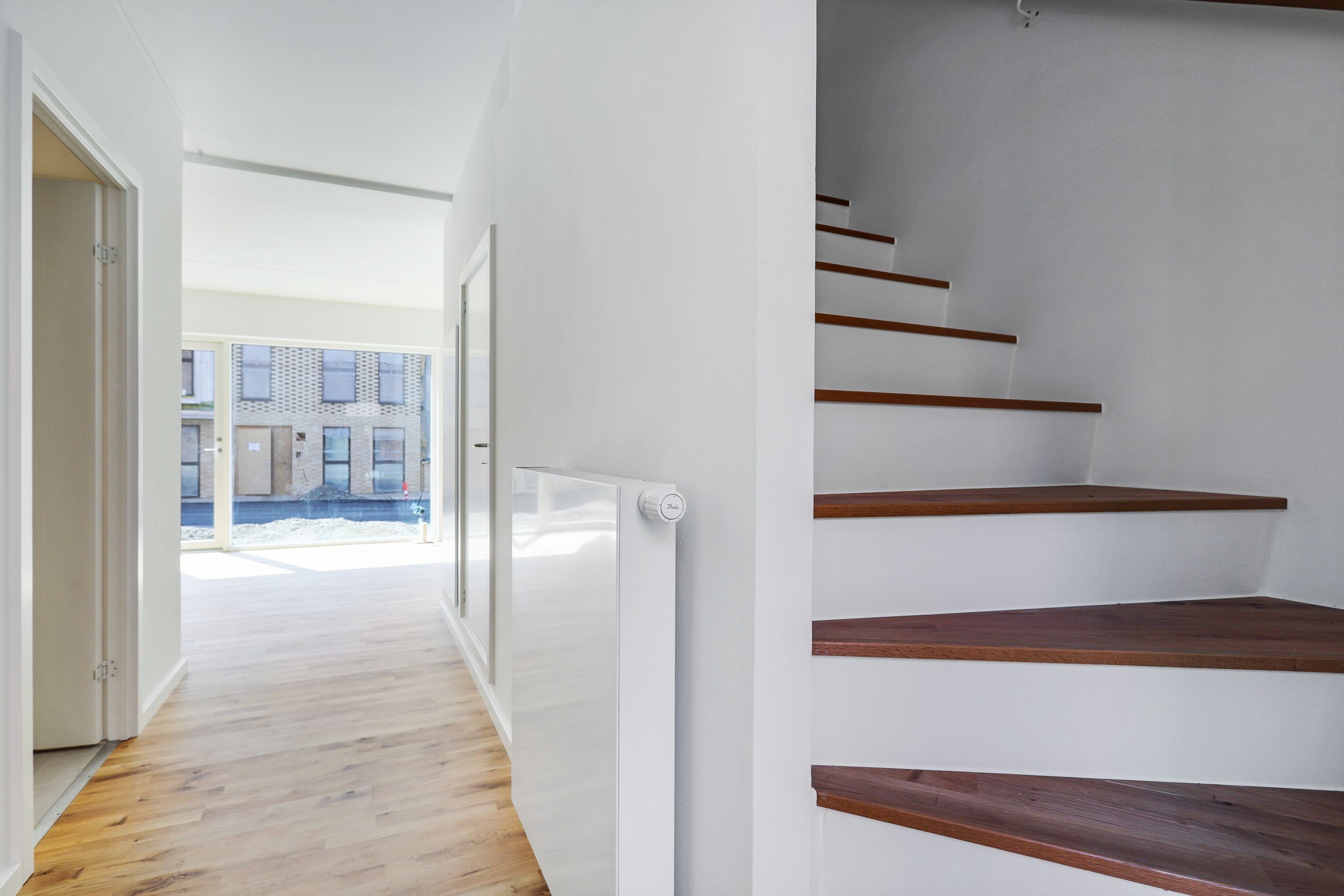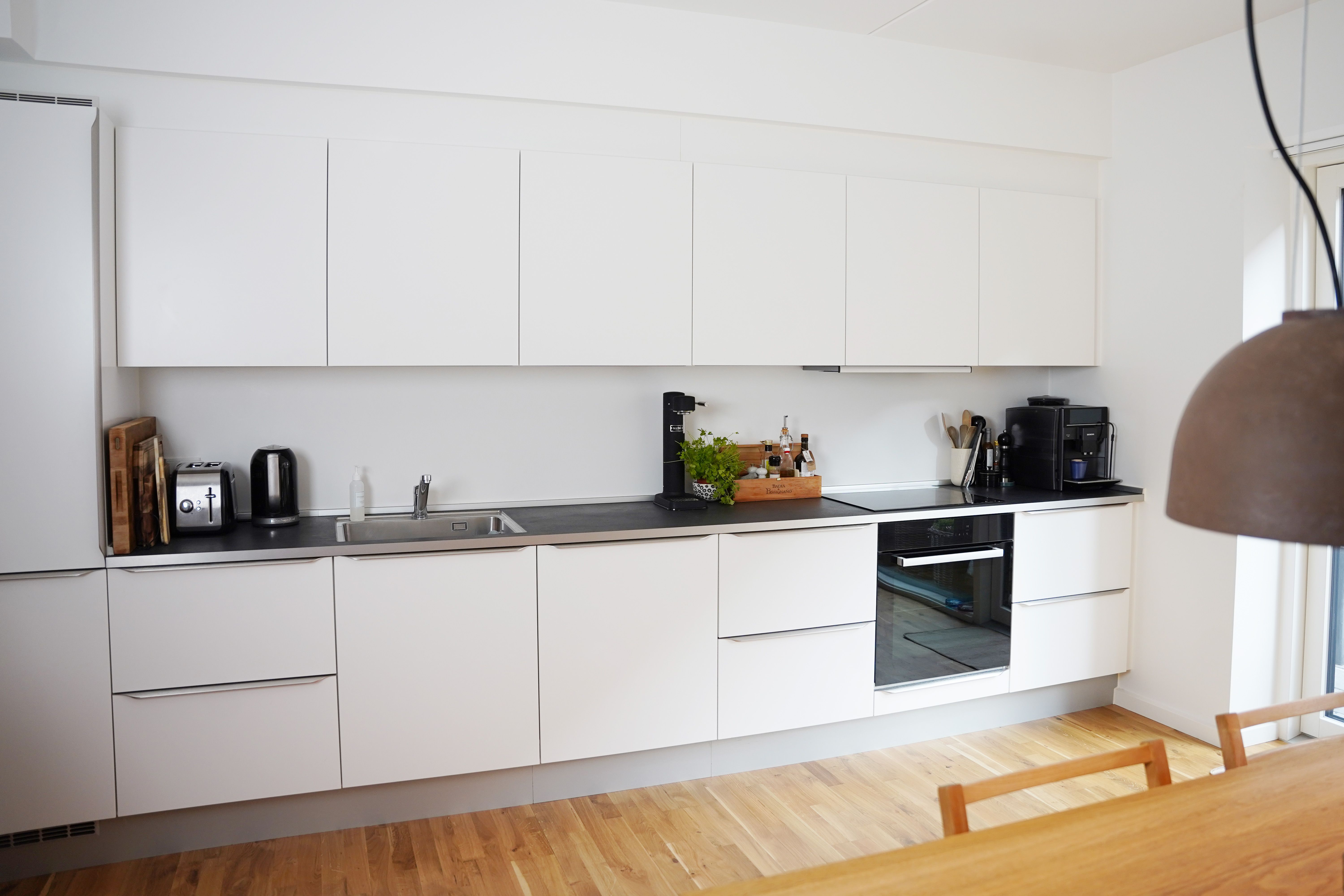 Lejligheden er opført i skandinavisk stil, der får den til at fremstå moderne, lys og indbydende. De store vinduer lukker store mængder dagslys ind og skaber derved en varm atmosfære og et flot spil på det lyse egetræsgulv. Lejlighedens hjerte er et centralt opholdsrum med åbent køkken og spiseplads. Det diskrete, hvide køkken er fra Invita med hårde hvidevarer fra Siemens. På badeværelset er der fliser på gulvet og i brusekabinen. Der er desuden vaskemaskine og tørretumbler fra Siemens. I mastersoveværelset findes indbyggede skabe til opbevaring. Det er muligt at ansøge om husdyrtilladelse i alle vores lejemål. OBS: ønskes der mål af lejligheden skal du selv huske opmålings udstyr til fremvisning, da der ikke er mål på plantegningen.