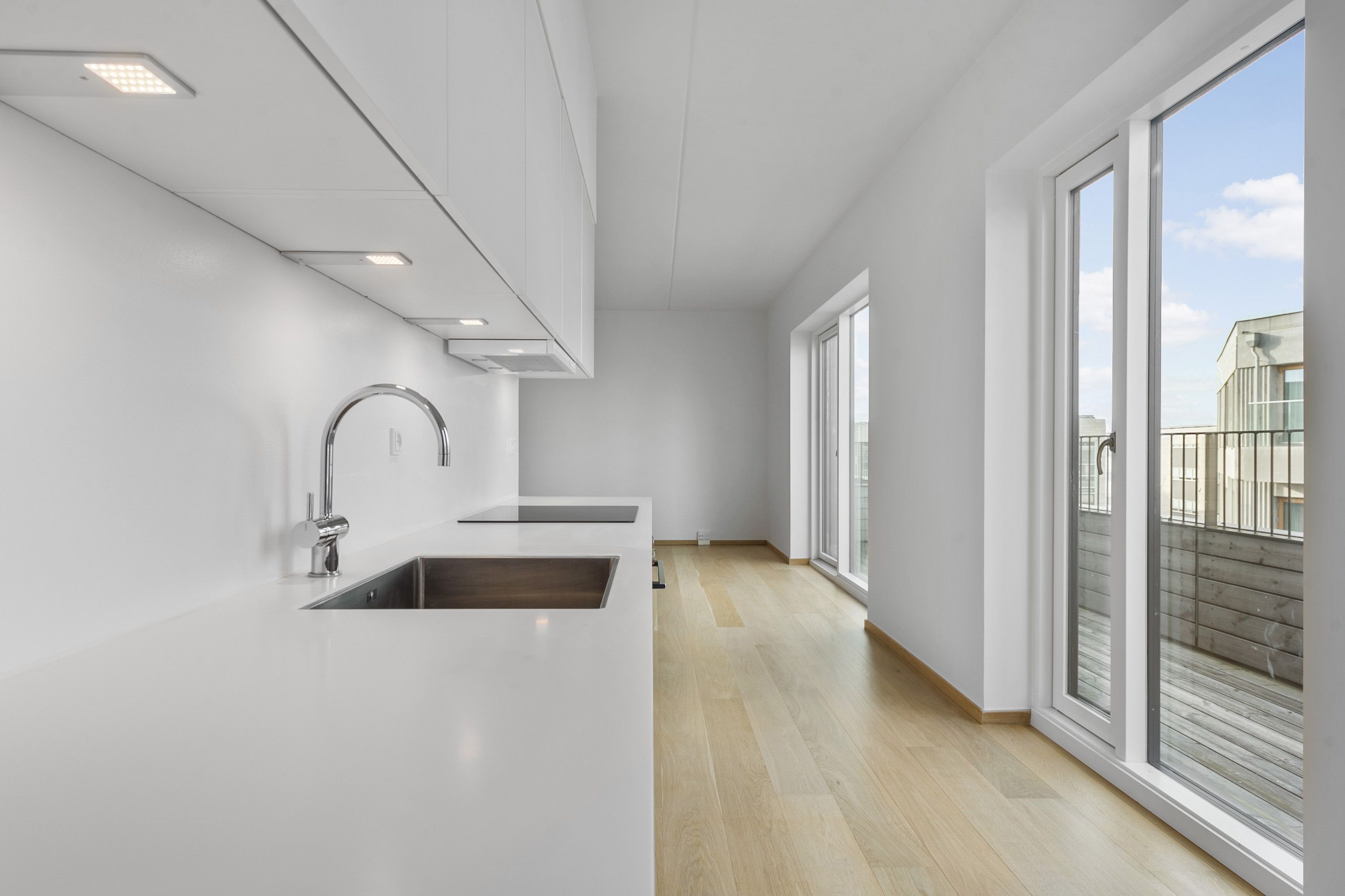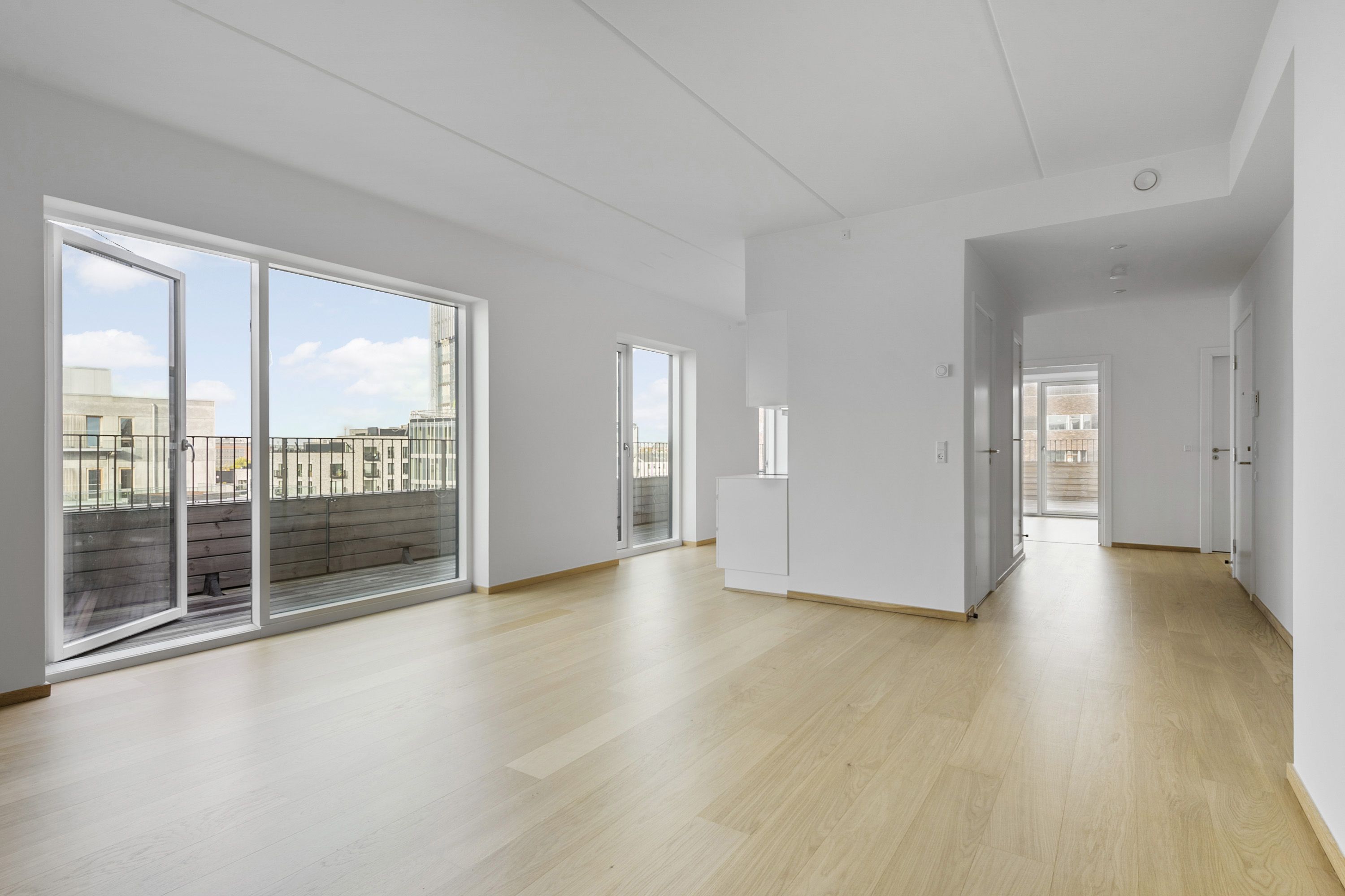 Lejligheden er beliggende i en velholdt ejendom med elevator og stor fælles tagterrasse. Den er indrettet med entre, et fint badeværelse med bruseniche. Køkkenet er i direkte forbindelse med en stor stue, og i forlængelse af denne er der endnu en stue med glasdøre. Denne stue kan bruges som ekstra soveværelse. Mellemgang med skabe og adgang til et stort soveværelse, samt endnu et badeværelse med badekar og vaskemaskine/tørretumbler. Der er opbevaringsrum i kælderen samt underjordisk parkering, med mulighed for at leje en parkeringsplads (1.200 kr). Der er ligeledes adgang til en fantastisk fælles tagterrasse, med en vidunderlig udsigt mod Øresund og København. Ejendommen er beliggende lige ved Kastellet med grønne områder og med kort afstand til byen, offentlig transport og gode indkøbsmuligheder.