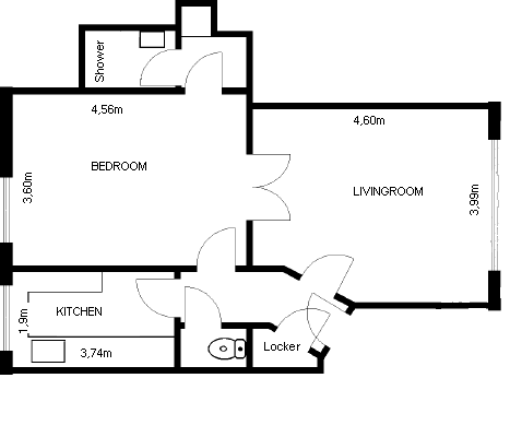 2 rm. apartment of 74 m²