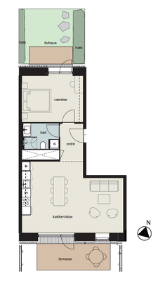 2 rm. apartment of 57 m²