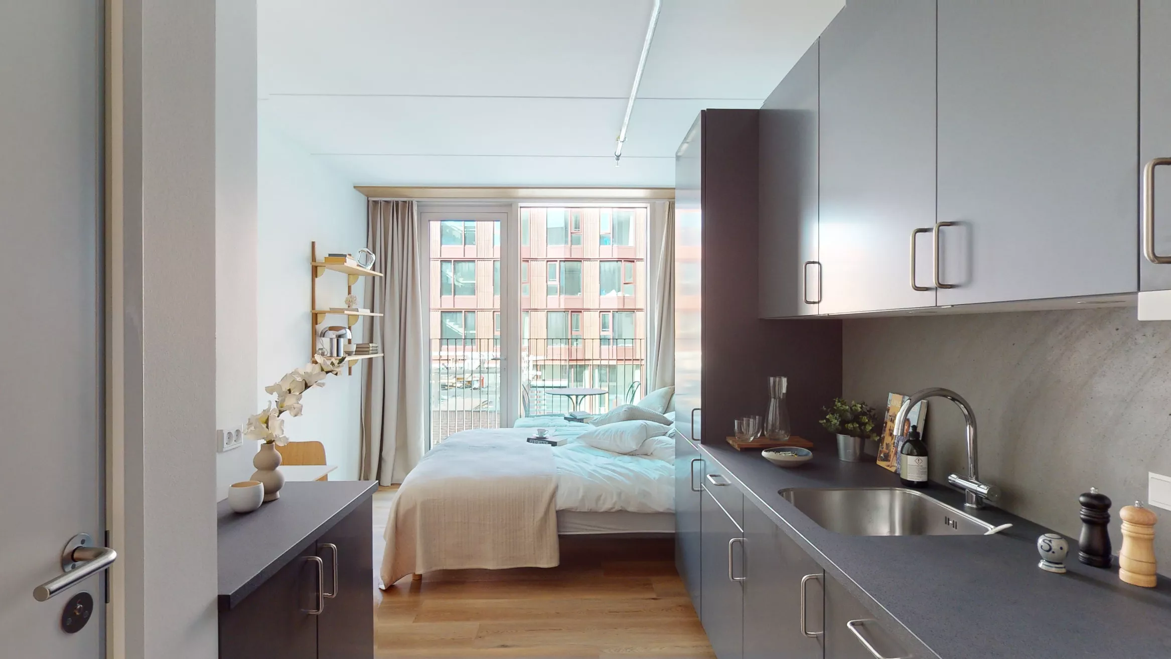 Lejlighederne er designet med fleksibilitet in mente. Møblerne er designet med flere funktioner, hvilket gør det nemt at skifte fra stue til soveværelse eller arbejdsområde til spisestue. Det er smart living, men stadig fuld af muligheder. Alle lejlighederne har et nordisk designkøkken lavet i samarbejde med det kendte, danske køkkenfirma Reform. Interiøret er specialdesignet af arkitekten, og rummer innovative løsninger, der optimerer hverdagslivet.