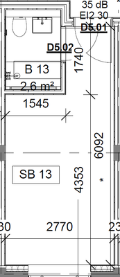 1 rm. apartment of 36 m²