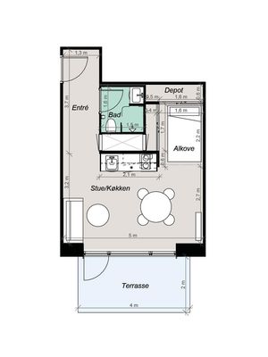 1 rm. apartment of 35 m²