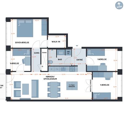 5 rm. apartment of 95 m²
