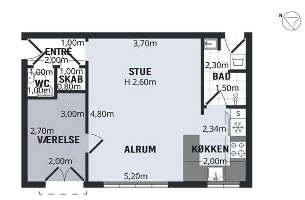 2 rm. apartment of 62 m²