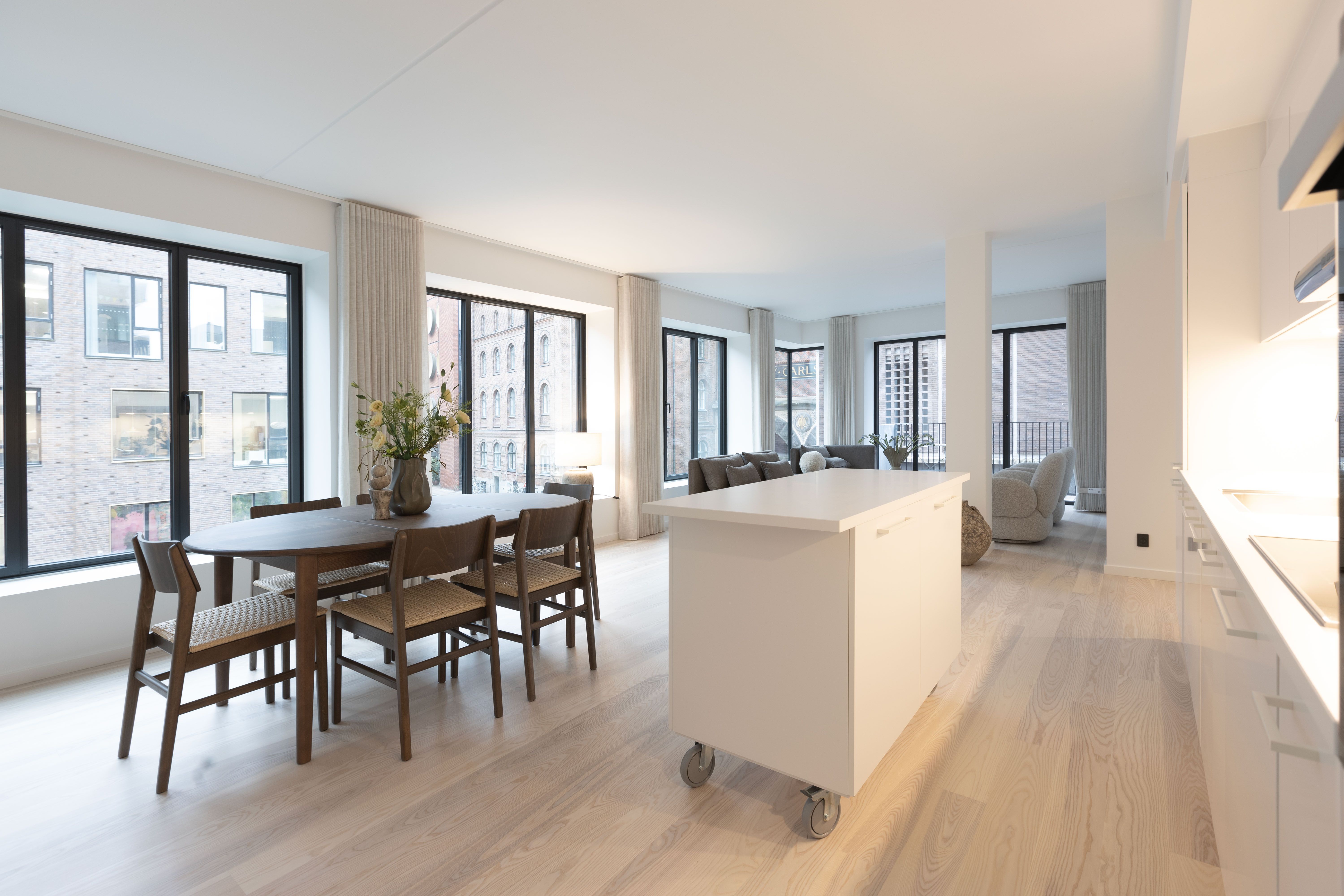 Lejlighederne er designet med fleksibilitet in mente. Møblerne er designet med flere funktioner, hvilket gør det nemt at skifte fra stue til soveværelse eller arbejdsområde til spisestue. Det er smart living, men stadig fuld af muligheder. Alle lejlighederne har et nordisk designkøkken lavet i samarbejde med det kendte, danske køkkenfirma Reform. Interiøret er specialdesignet af arkitekten, og rummer innovative løsninger, der optimerer hverdagslivet.
