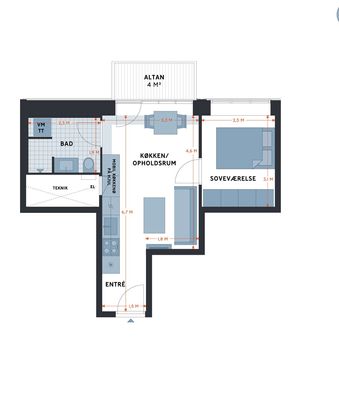 2 rm. apartment of 62 m²