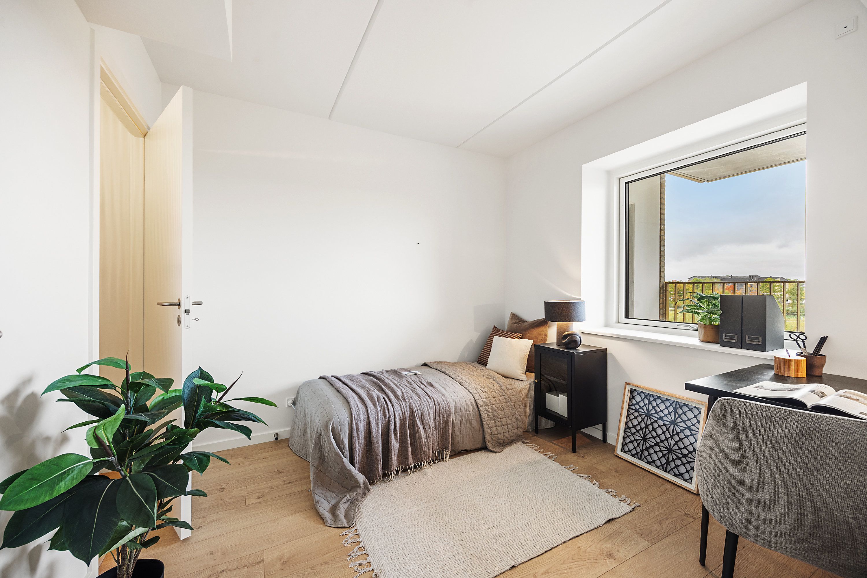 Lejligheden er indrettet med et stort alrum, hvor køkken og stue smelter sammen og skaber en rummelig atmosfære. De store vinduespartier trækker lys ind i lejligheden fra alle vinkler. Dertil er boligen udstyret med et moderne køkken fra Invita, hårde hvidevarer fra Bosch Siemens samt praktisk skabsplads i mastersoveværelset. Fra gangen har du adgang til det rummelige og indbydende badeværelse med gulvvarme, formstøbt marmorvask, væghængt toilet samt vaskesøjle. Fra stuen har du udgang til en stor møblérbar altan, der giver et privat pusterum med masser af sol, frisk luft og hygge. Det er muligt at ansøge om husdyrtilladelse i alle vores lejemål. OBS: ønskes der mål af lejligheden skal du selv huske opmålings udstyr til fremvisning, da der ikke er mål på plantegningen.