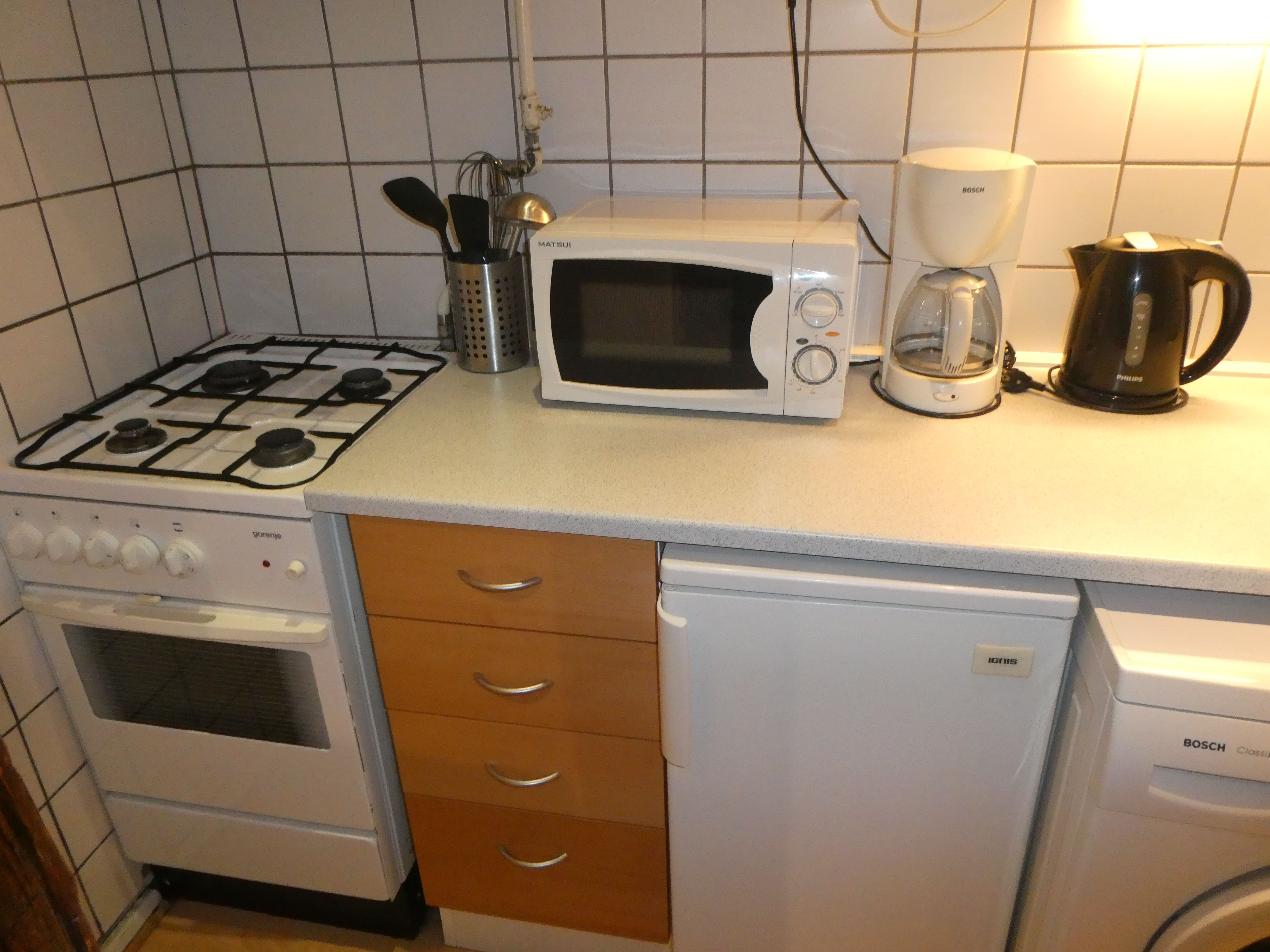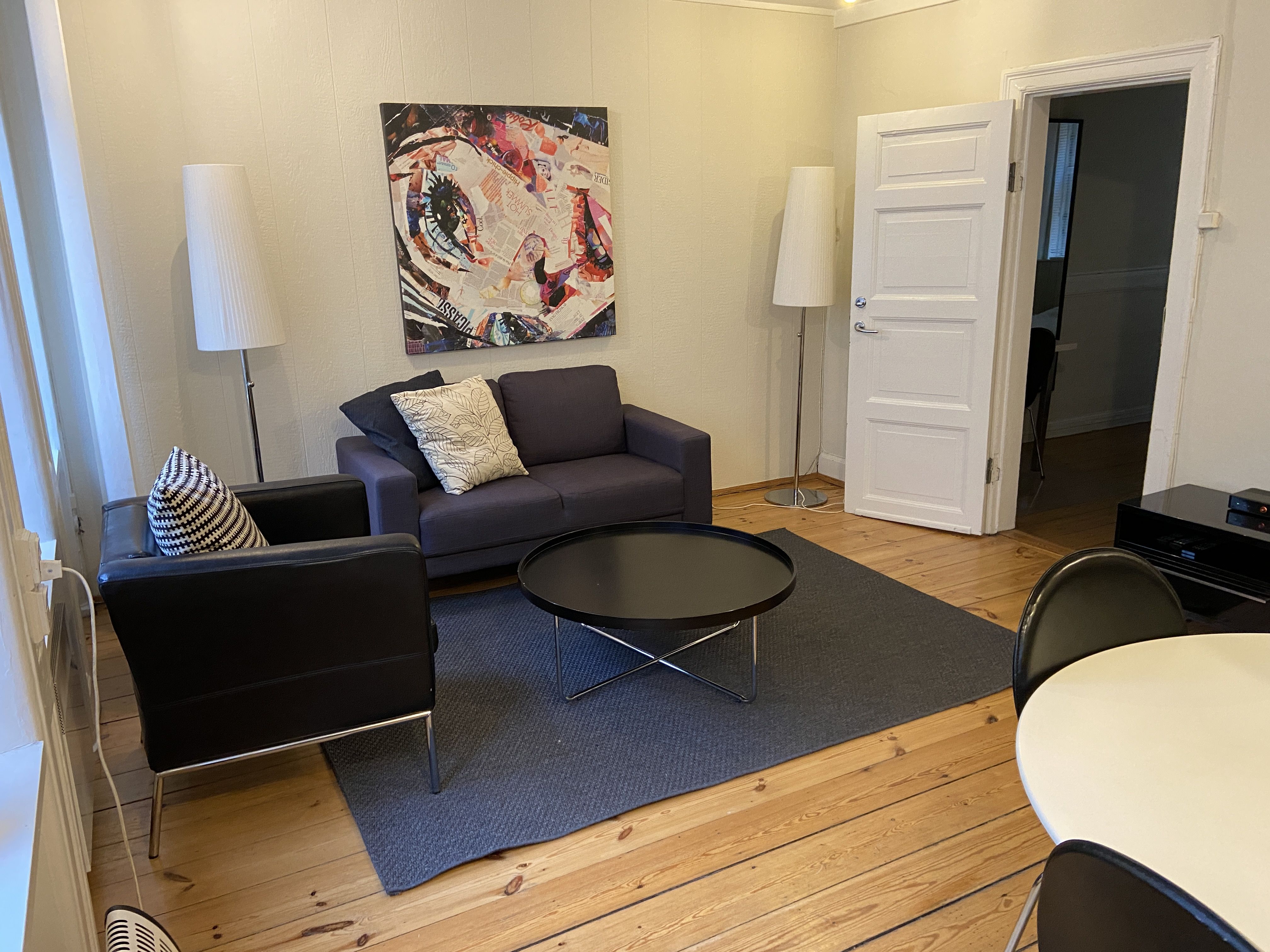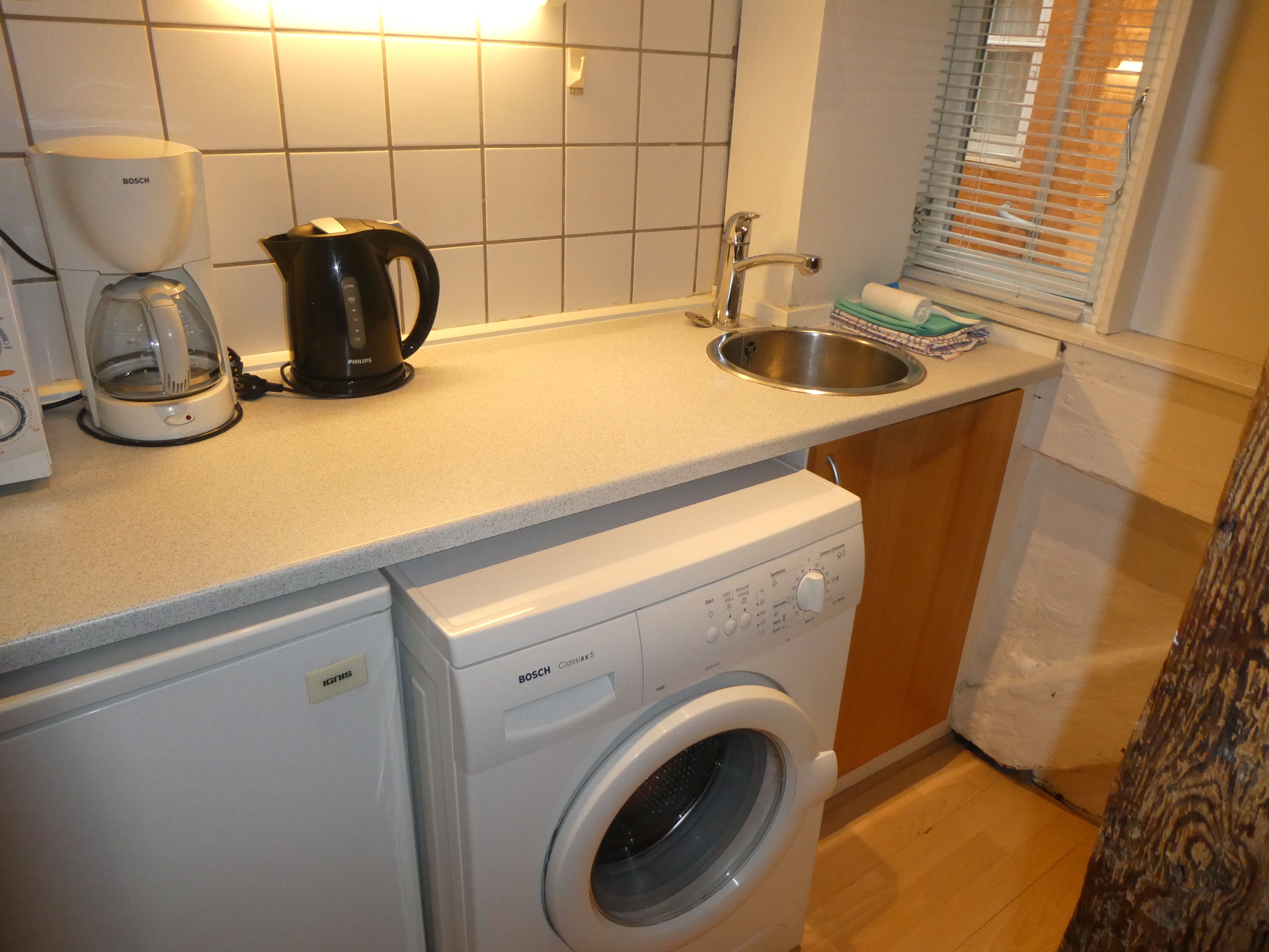 Lejligheden er delvist møbleret. Soveværelse, badeværelse og køkken er fuldt udstyret, herunder opvaskemaskine og kombineret vaskemaskine/tørretumbler. Forbrug af varme, el og vand er inkluderet. Bemærk, at internet ikke er inkluderet.