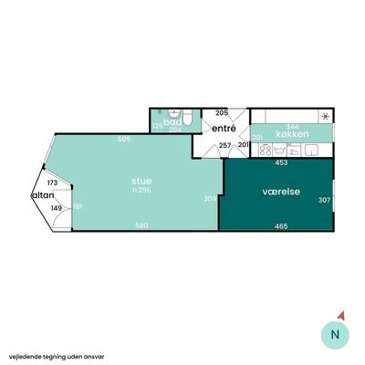 2 rm. apartment of 60 m²