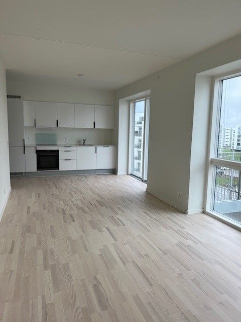 Lejligheden fremstår lys, moderne og stilren med matlakeret gulv i eg og et stort og åbent køkken-alrum. Køkkenet er hvidt JKE Design med grå bordplade og sokkel samt Energi A++ Bosch opvaskemaskine og integreret køleskab og fryser. Lejligheden er nem at indrette, så du har rig mulighed for at sætte dit eget personlige præg på dit spritnye hjem. Dertil har lejligheden en funktionel ruminddeling, hvor hver en kvadratmeter er udnyttet optimalt og tilpasset en moderne livsstil. Badeværelset er stort med plads til armbevægelser og kan rumme en hel familie på en travl hverdagsmorgen. På badeværelset er der desuden installeret gulvvarme, og her finder du både energieffektiv A+++ vaskemaskine og B tørretumbler fra Bosch. Det er muligt at ansøge om husdyrtilladelse i alle vores lejemål. OBS: ønskes der mål af lejligheden skal du selv huske opmålings udstyr til fremvisning, da der ikke er mål på plantegningen.