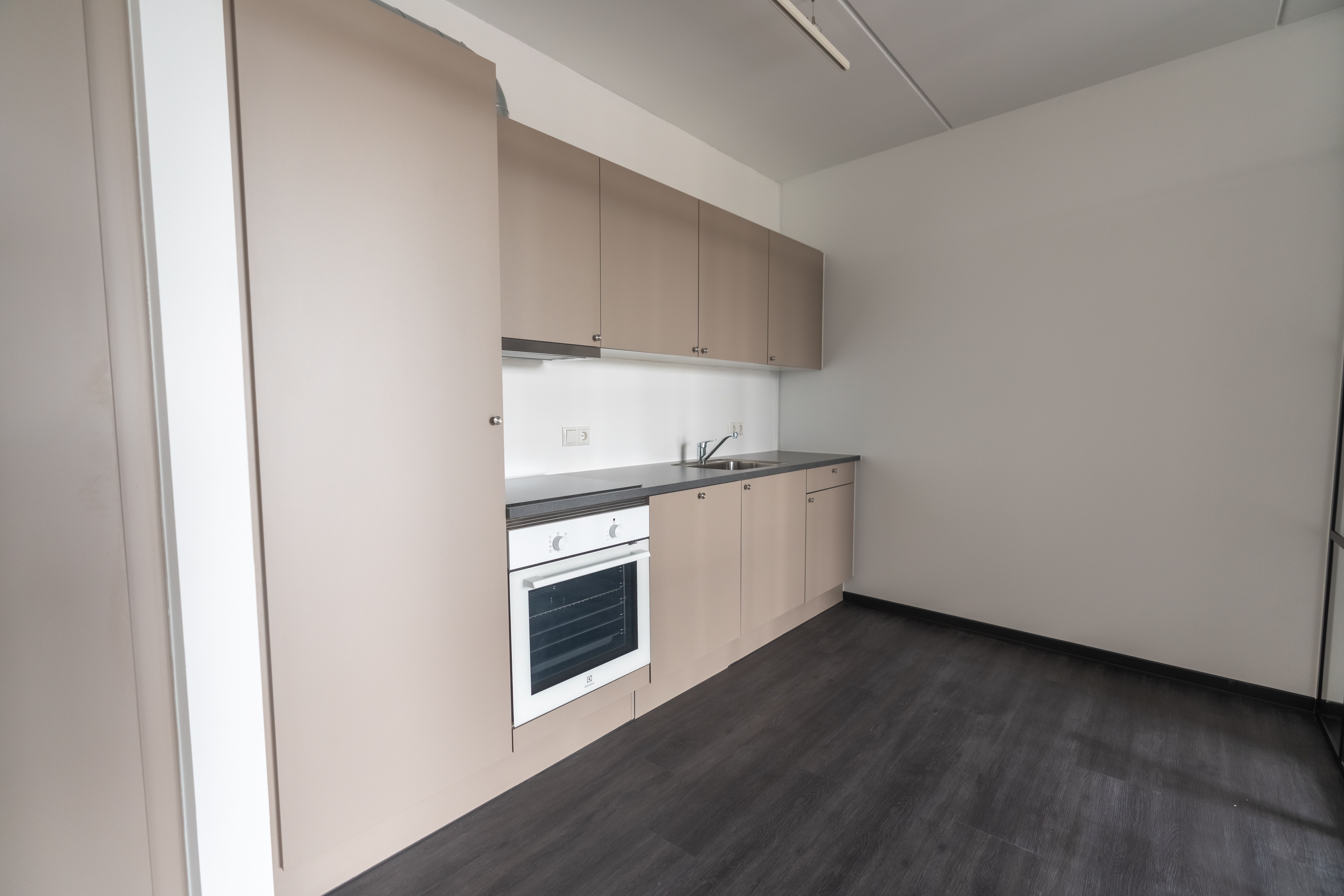 Den rummelige fornemmelse går igen i alle boliger, med en planløsning der giver åbenhed og kig på langs gennem de store rum. Materialevalget matcher den stringente arkitektur med lyse detaljer og naturlige gulve.