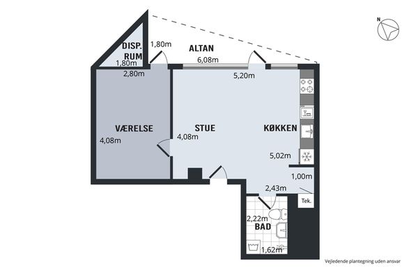 2 rm. apartment of 59 m²