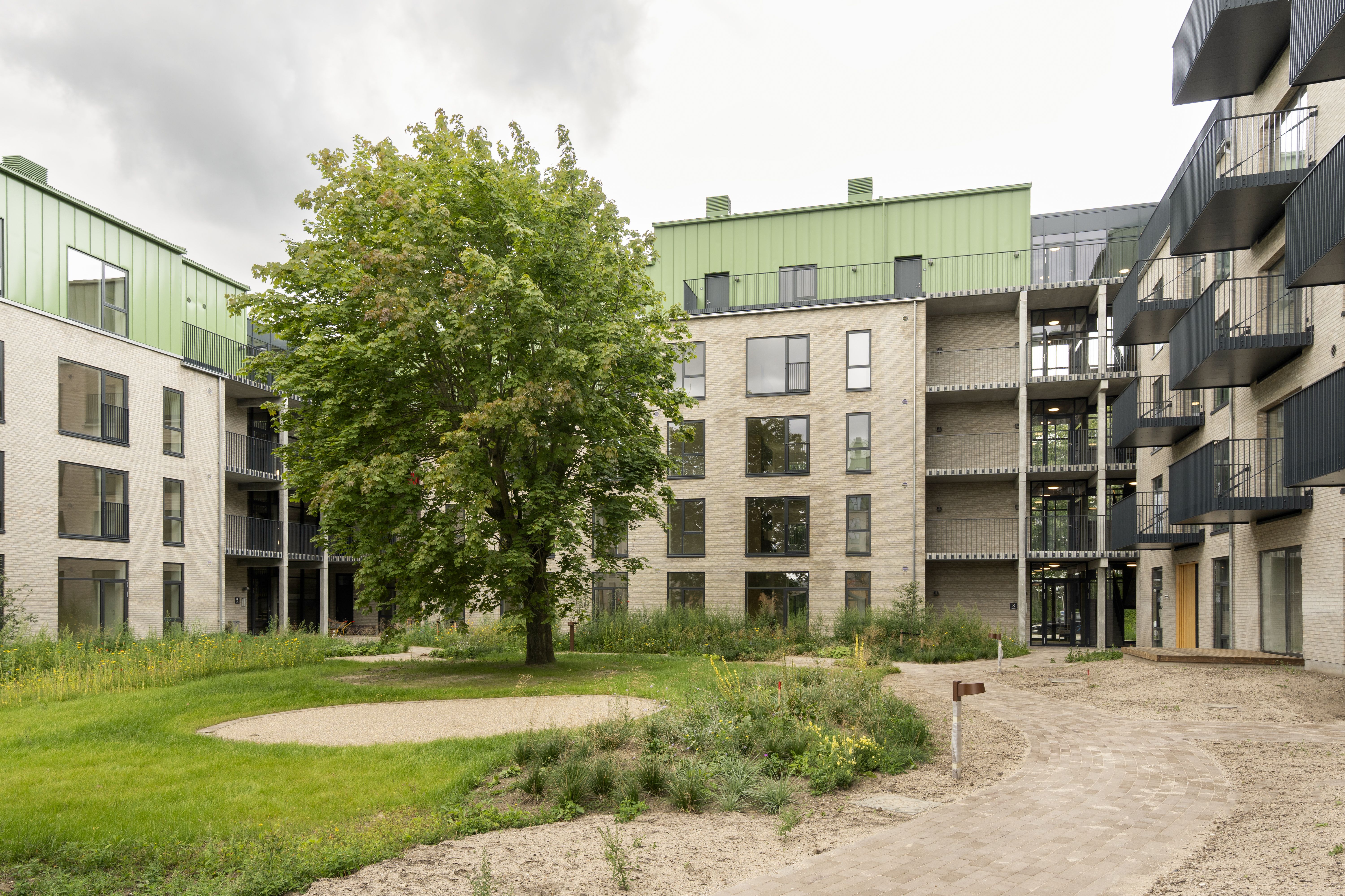 Som lejer af en de skønne lejligheder, kan du glæde dig over at bo en nydelig rødstensejendom, hvor der etableres gårdmiljø og en 250m² stor tagterrasse, som deles med naboerne. I parkeringskælderen er der 48 parkeringspladser, som kan lejes for 300dkk om måneden.