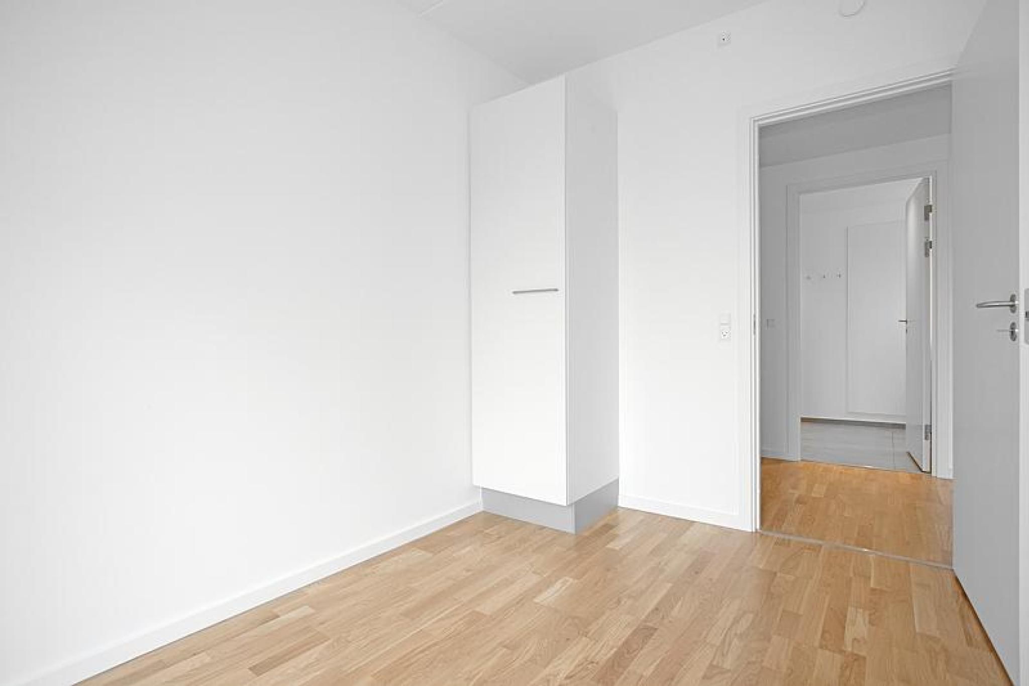 Lejligheden er opført i lyse materialer, med store vinduer og fokus på maksimal udnyttelse af lyset og udsigten til vandet. Det lyse køkken er fra Invita og indeholder masser af skabsplads samt hårde hvidevarer fra Siemens. Opholdsstue og køkken er i åben forbindelse, så her er god mulighed for både spiseafdeling og hyggeligt sofahjørne. Badeværelset er opført med store fliser på gulv samt i bruseniche og derudover malet hvidt. Der er separat vaskesøjle med både vaskemaskine og tørretumbler. Og så er der desuden gulvvarme. I soveværelset samt i entré/fordelingsgang findes hvide indbygningsskabe. Gulvene er et egetræsparket fra Junckers. Det er muligt at ansøge om husdyrtilladelse i alle vores lejemål. OBS: ønskes der mål af lejligheden skal du selv huske opmålings udstyr til fremvisning, da der ikke er mål på plantegningen.