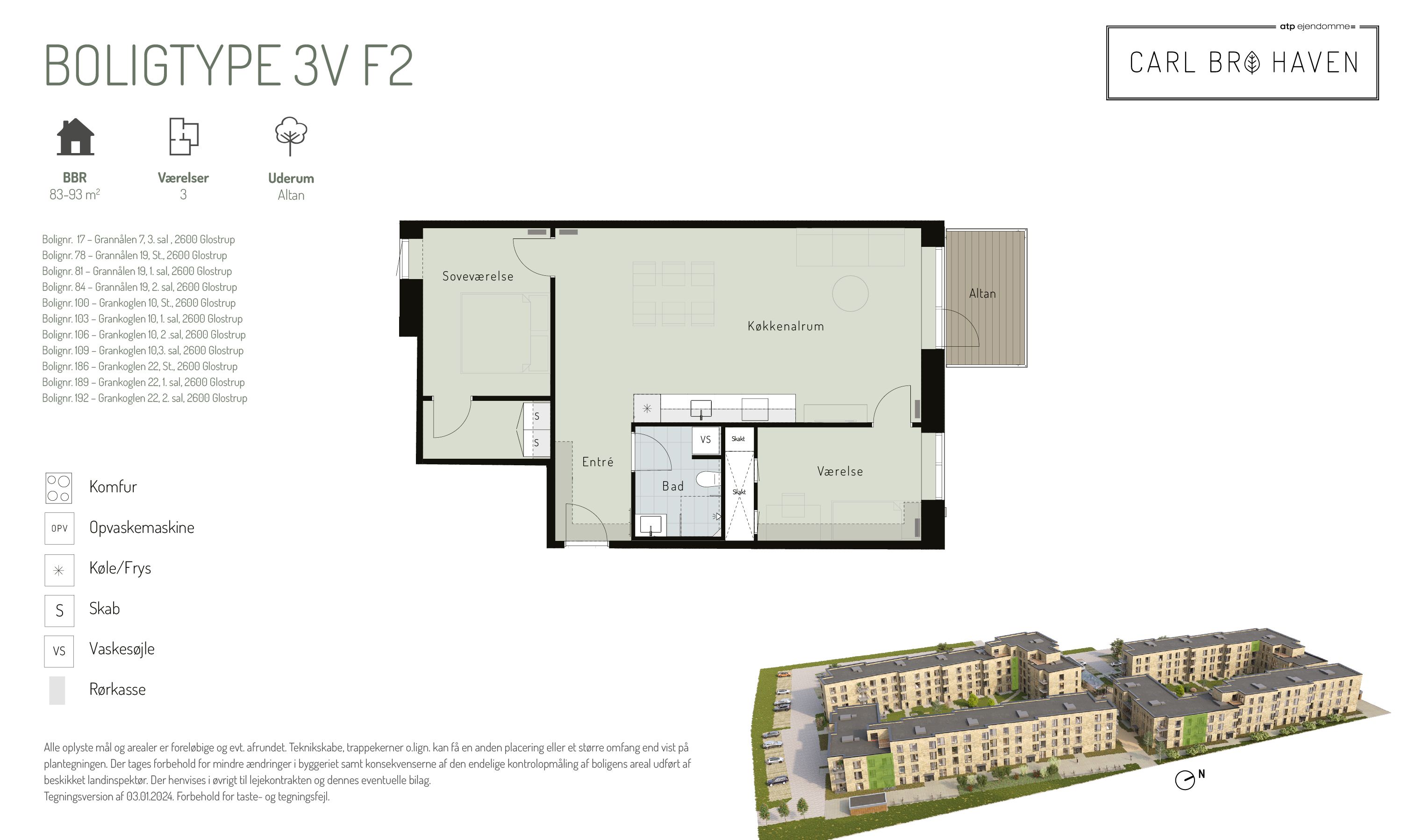 3 rm. apartment of 84 m²