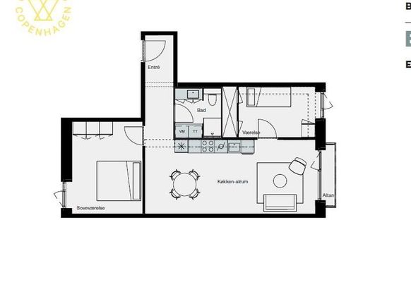 **Velkommen til** Samtlige boliger i Maias Vænge opføres i høj kvalitet med stor fleksibilitet i indretningsmuligheder og er fuldt udstyret med køkken, bad og vaskesøjle til hver bolig. Boligerne opføres i en rolig arkitektur, der bugter sig gennem et harmonisk og frodigt gårdrum med slyngende stier, lette træer og planter. Her er ingen lige linjer og fintklippede græsplæner, men vildt med vilje, grønne bunddækker og plads til at insekterne kan flytte ind. Alle beboere har brugsret til alm. cykler og ladcykler, som er til fælles benyttelse for alle i Maias Vænge. Hver lejlighed får en cykelnøgle, der passer til både ladcykel og alm. cykel. Inden for 1 km findes Ballerup Station, Ballerup Shoppingcenter, Baltorpskolen, integreret institution samt NEXT uddannelsescenter, og Københavns Hovedbanegård kan nås via motorvejsforbindelser eller offentlig transport på under 30 minutter. Bemærk venligst at der tages forbehold for, at plantegningen er vejledende og ligeledes billederne af boligen, som ikke nødvendigvis svarer til det pågældende lejemål. Billederne er fra vores prøveboliger og afbilleder derfor ikke nødvendigvis den specifikke bolig.