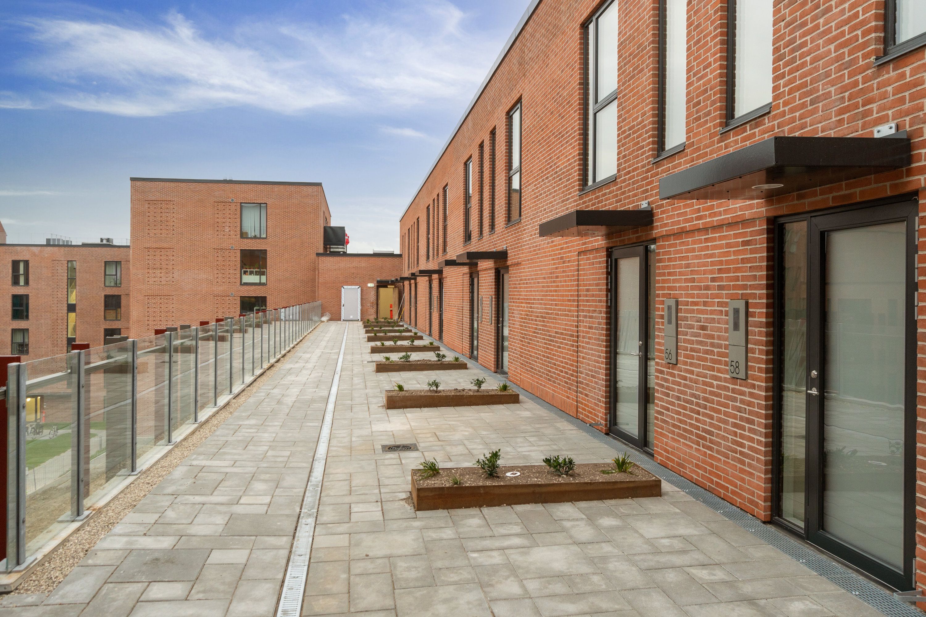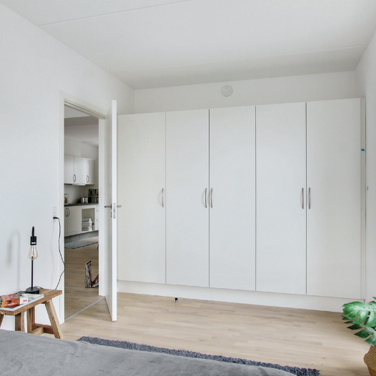 Lejlighederne er indrettet med effektivitet og livskvalitet for øje og måler i gennemsnit 85 gode kvadratmeter, hver især med privat udgang til en altan eller skær terrasse. Disse lysfyldte boliger er i særdeles målrettet den moderne familie, der prioriterer beliggenhed over størrelse, samt par, der ønsker at bo tæt på byen og i gåafstand til det meste.